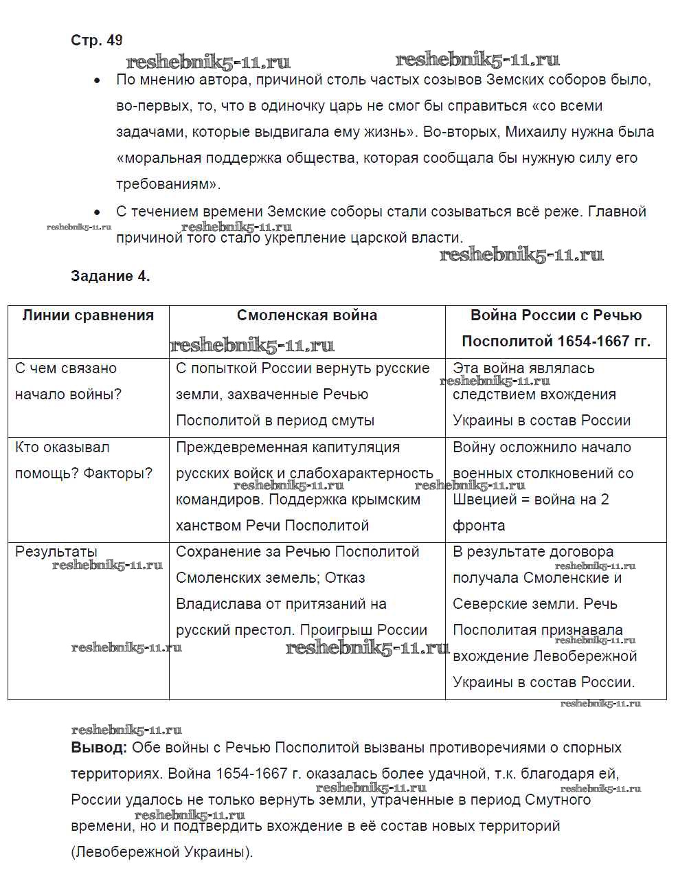Готовая домашняя работа с ответами по Истории за 7 класс Артасов Контрольные работы УМК Просвещение 2016 ФГОС - Страницы 49