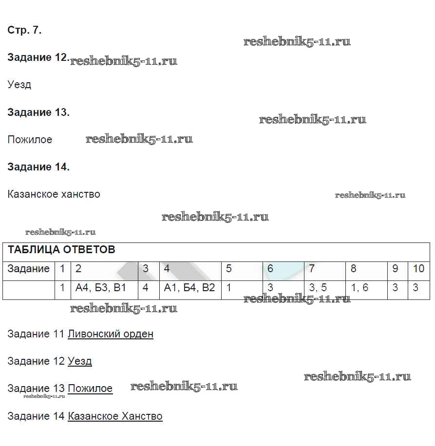 Готовая домашняя работа с ответами по Истории за 7 класс Артасов Контрольные работы УМК Просвещение 2016 ФГОС - Страницы 7