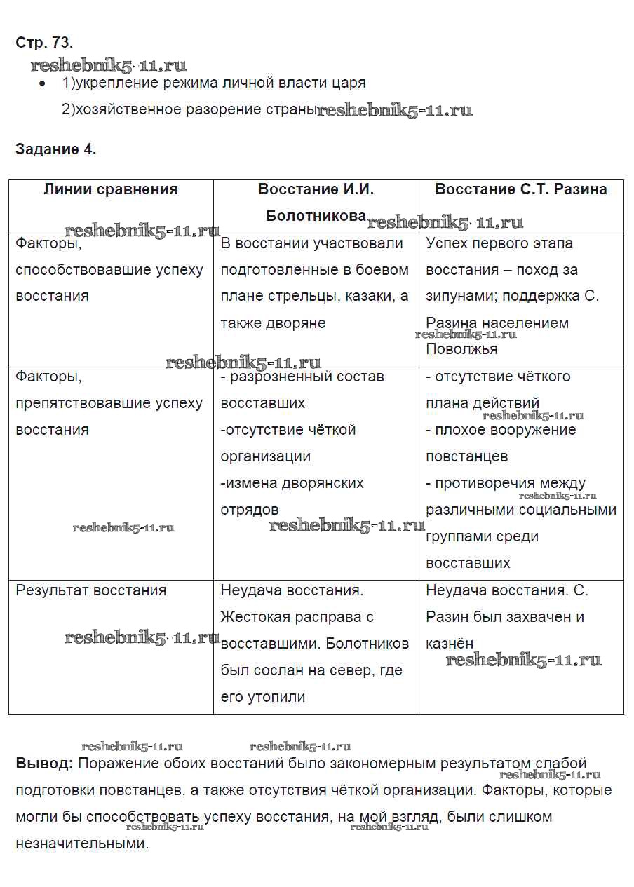 Готовая домашняя работа с ответами по Истории за 7 класс Артасов Контрольные работы УМК Просвещение 2016 ФГОС - Страницы 73