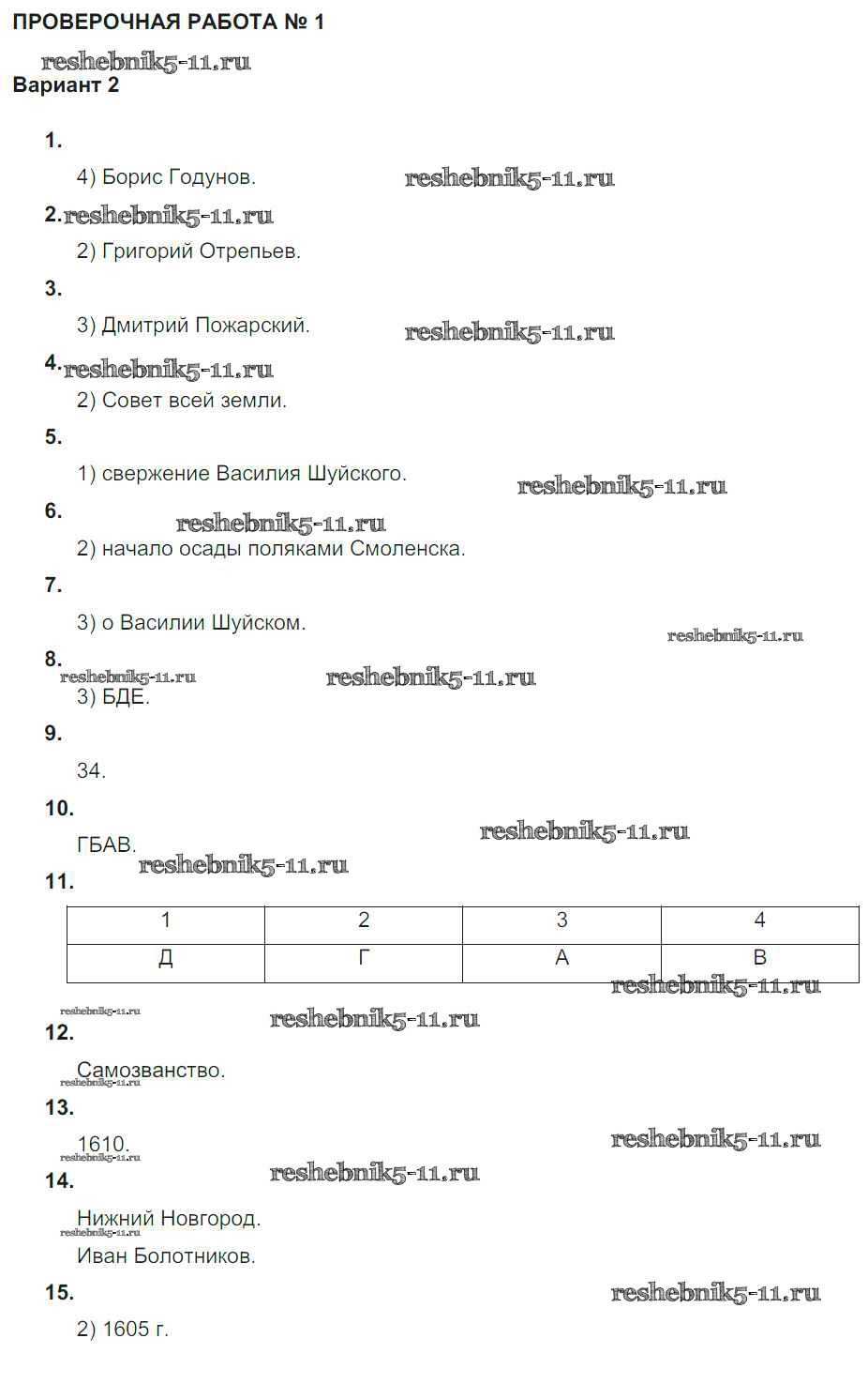 Решебник / Россия на рубеже XVI-XVII вв. / проверочная работа 1 / вариант 2