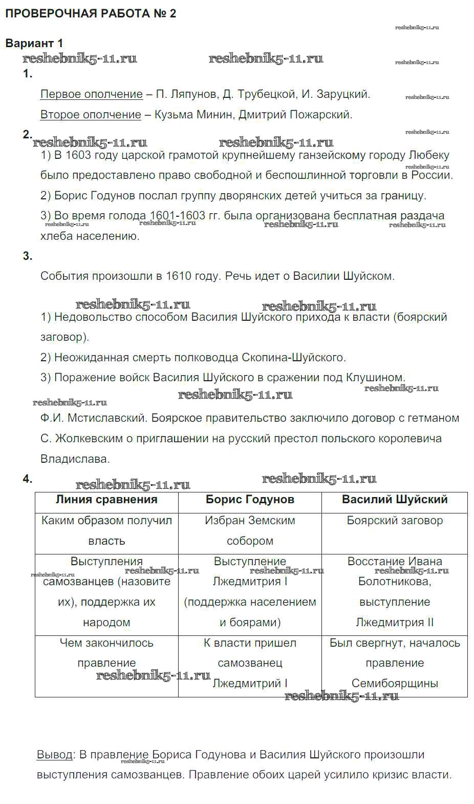 Решебник / Россия на рубеже XVI-XVII вв. / проверочная работа 2 / вариант 1