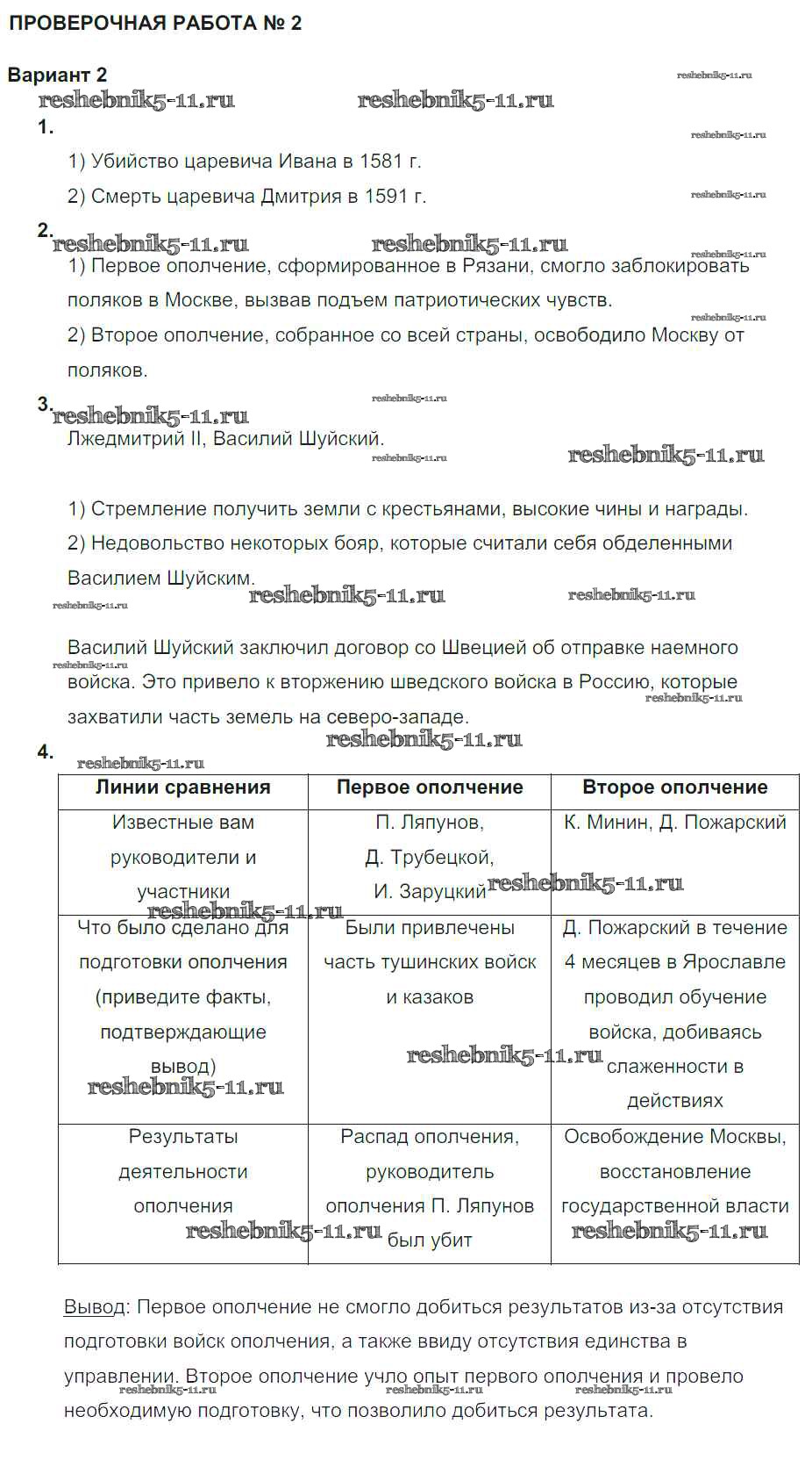 Решебник / Россия на рубеже XVI-XVII вв. / проверочная работа 2 / вариант 2