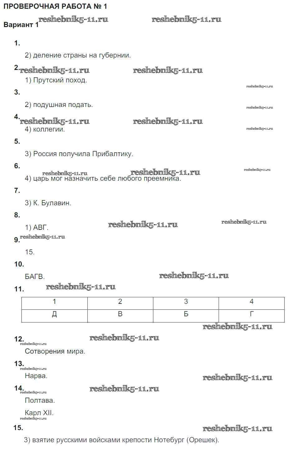 Решебник / Россия при Петре I / проверочная работа 1 / вариант 1