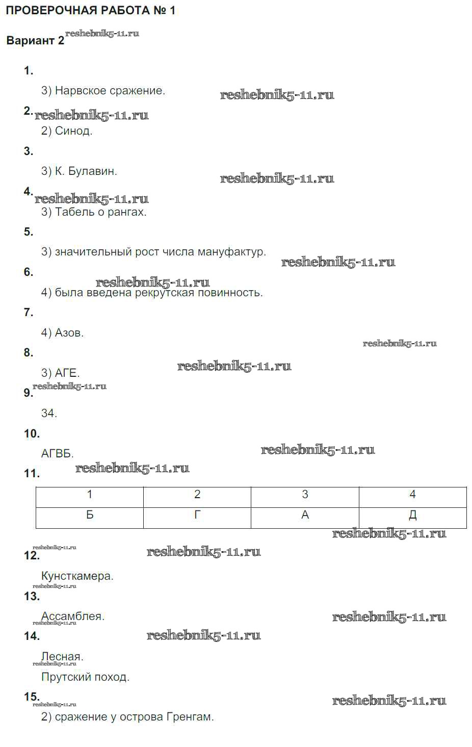 Решебник / Россия при Петре I / проверочная работа 1 / вариант 2