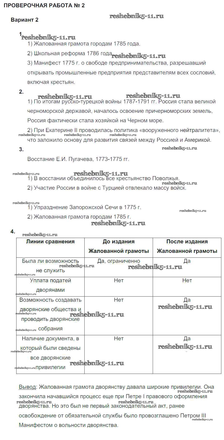 Решебник / Россия в 1762-1801 гг. / проверочная работа 2 / вариант 2