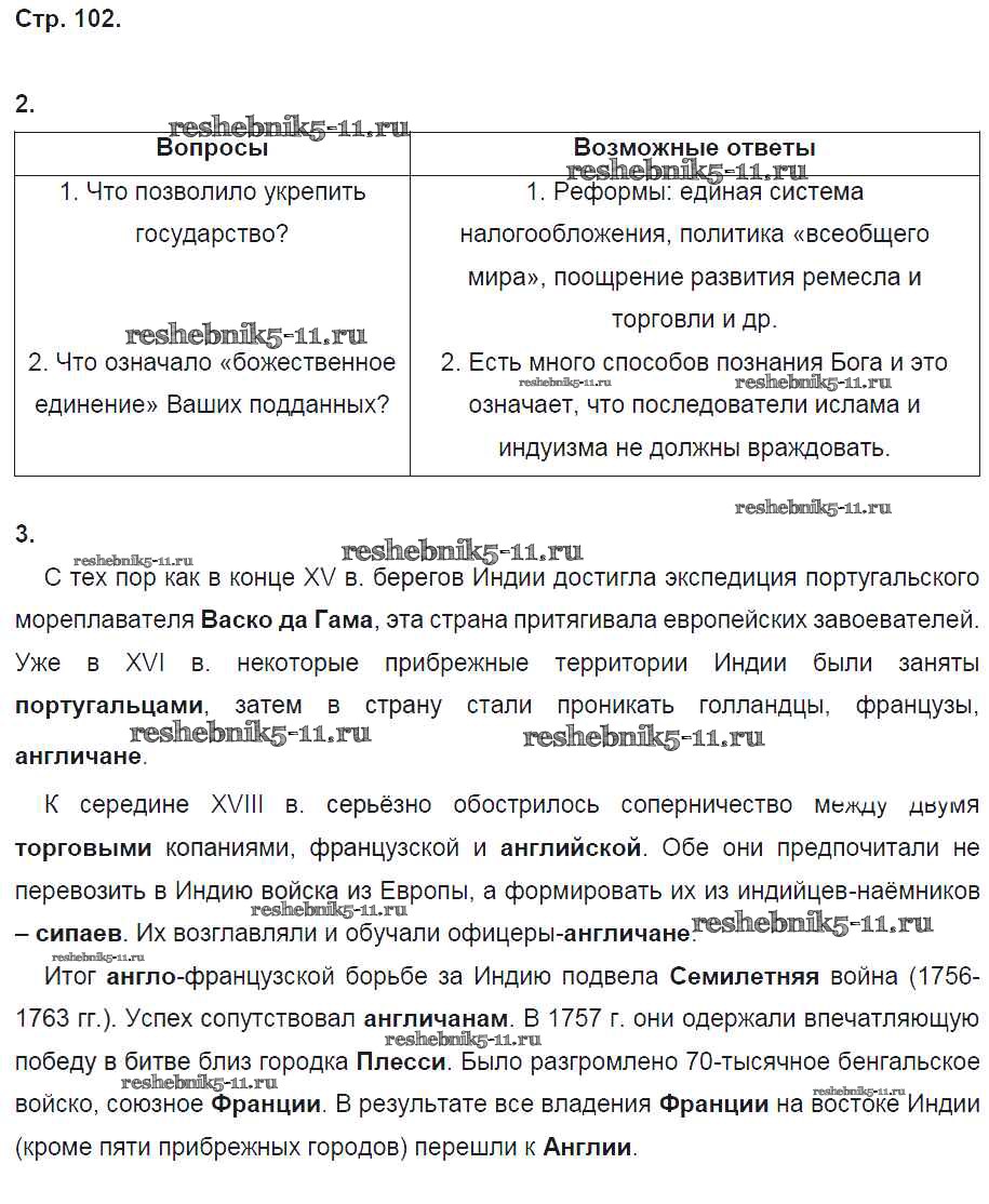 Готовая домашняя работа с ответами по Истории за 7 класс Баранов Рабочая тетрадь Алгоритм успеха Вентана-граф 2015 ФГОС - Страницы 102