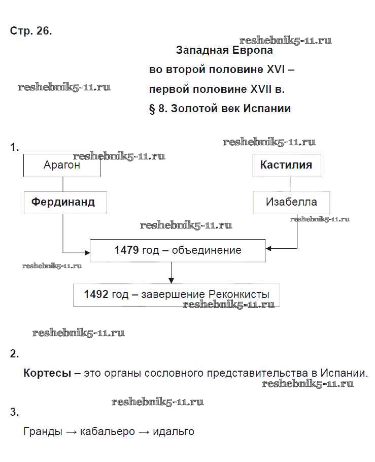 Готовая домашняя работа с ответами по Истории за 7 класс Баранов Рабочая тетрадь Алгоритм успеха Вентана-граф 2015 ФГОС - Страницы 26