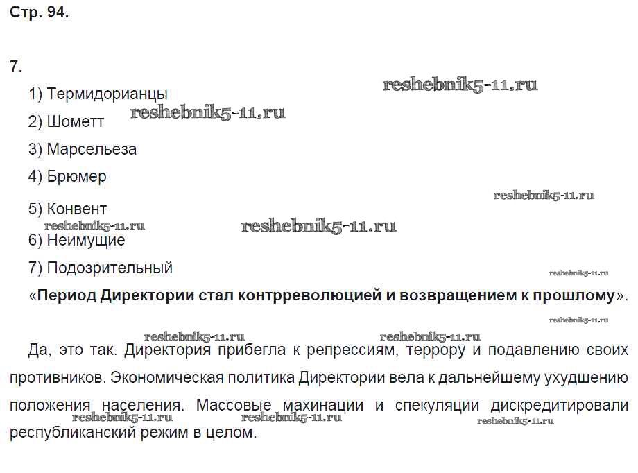 Готовая домашняя работа с ответами по Истории за 7 класс Баранов Рабочая тетрадь Алгоритм успеха Вентана-граф 2015 ФГОС - Страницы 94