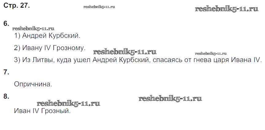 Готовая домашняя работа с ответами по Истории за 7 класс Гевуркова Рабочая тетрадь УМК Экзамен 2018 ФГОС - Страницы 27