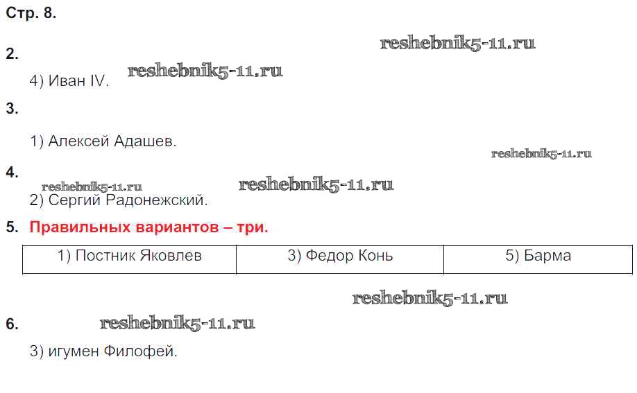 Готовая домашняя работа с ответами по Истории за 7 класс Гевуркова Рабочая тетрадь УМК Экзамен 2018 ФГОС - Страницы 8