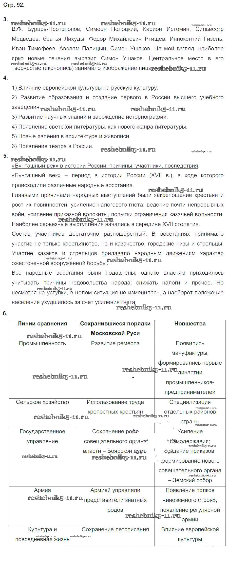 Готовая домашняя работа с ответами по Истории за 7 класс Гевуркова Рабочая тетрадь УМК Экзамен 2018 ФГОС - Страницы 92