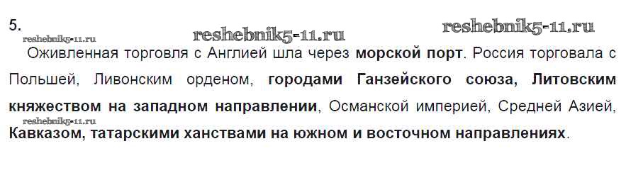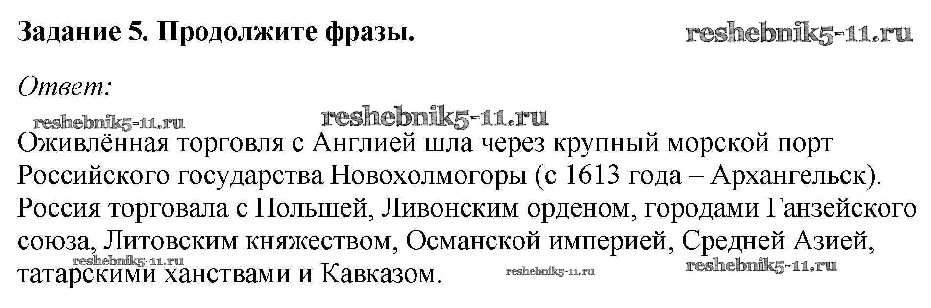 Готовая домашняя работа с ответами по Истории за 7 класс Данилов, Косулина, Лукутин, Соколова Рабочая тетрадь УМК Просвещение 2016 ФГОС - § 2. Территория, население и хозяйство России в начале XVI в. 5