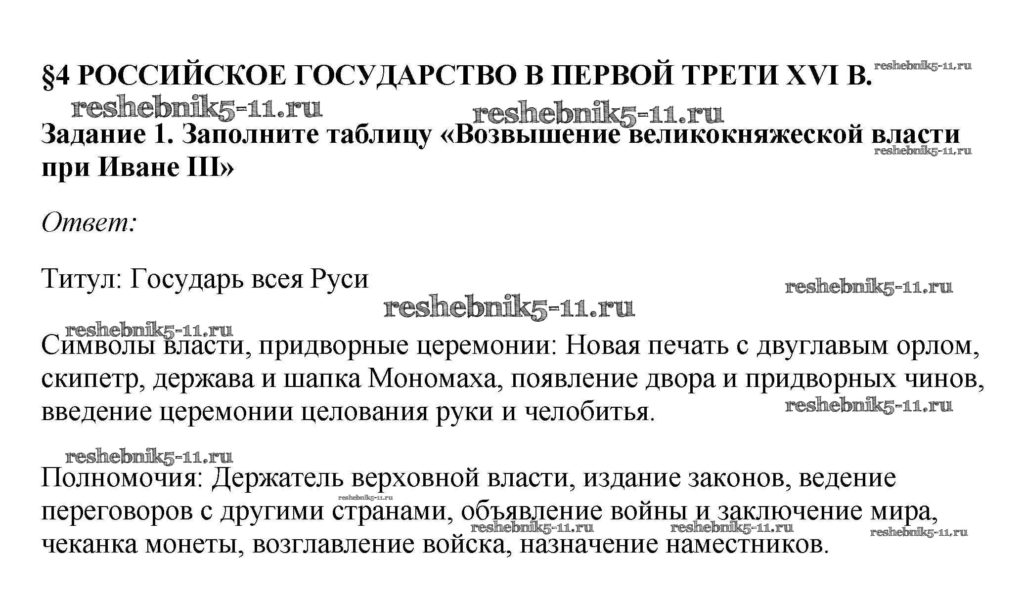 Готовая домашняя работа с ответами по Истории за 7 класс Данилов, Косулина, Лукутин, Соколова Рабочая тетрадь УМК Просвещение 2016 ФГОС - § 4. Российское государство в первой трети XVI в. 1