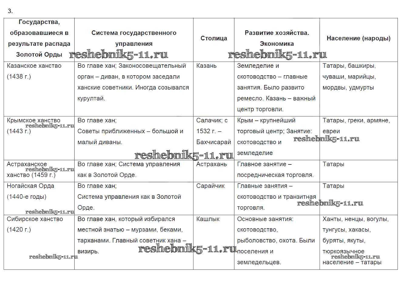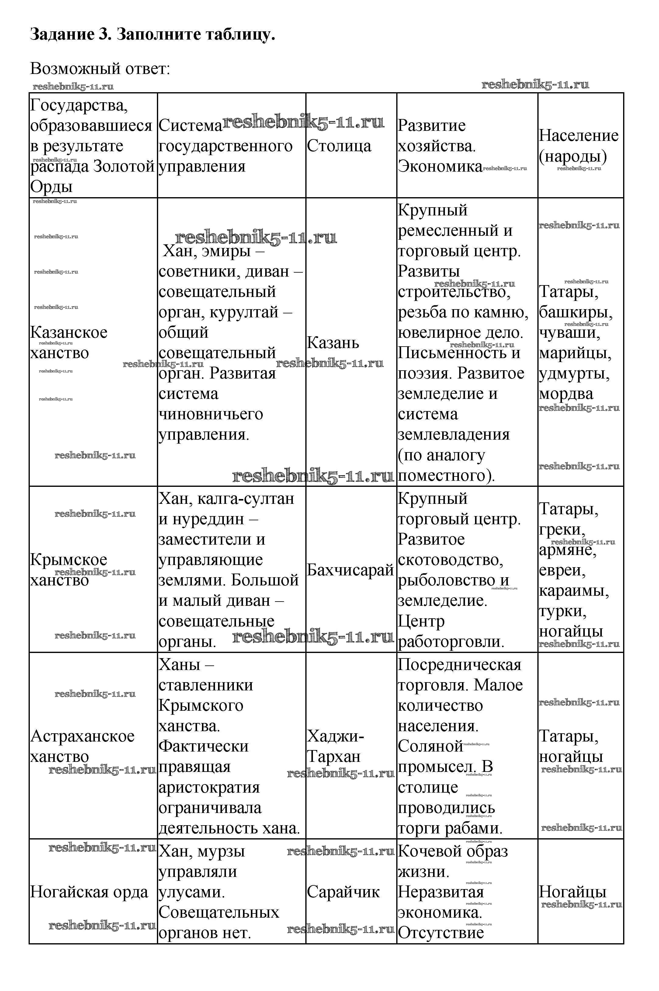 Готовая домашняя работа с ответами по Истории за 7 класс Данилов, Косулина, Лукутин, Соколова Рабочая тетрадь УМК Просвещение 2016 ФГОС - Государства Поволжья, Северного Причерноморья, Сибири в середине XVI в. 3