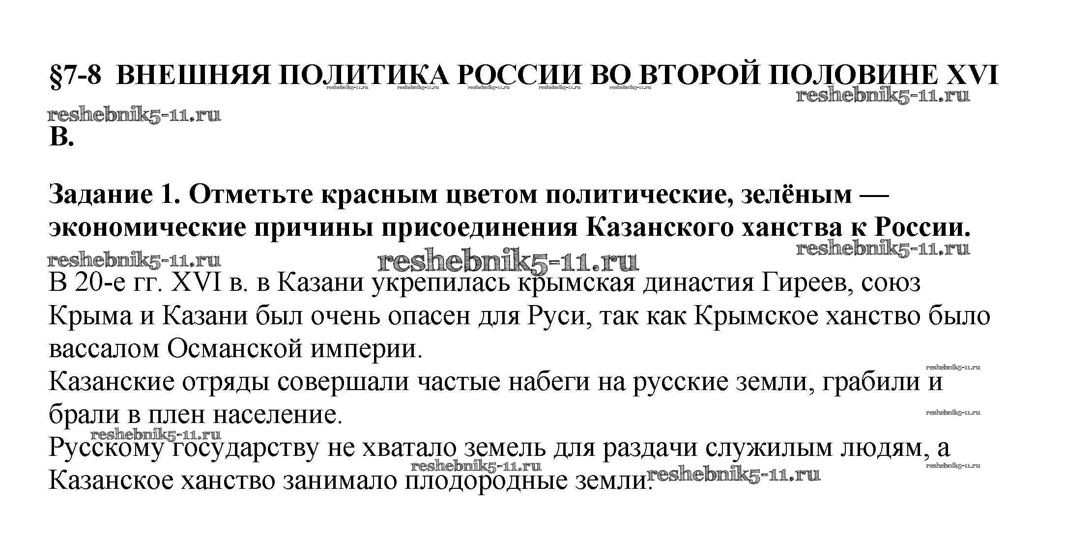 Готовая домашняя работа с ответами по Истории за 7 класс Данилов, Косулина, Лукутин, Соколова Рабочая тетрадь УМК Просвещение 2016 ФГОС - § 7—8. Внешняя политика России во второй половине XVI в. 1