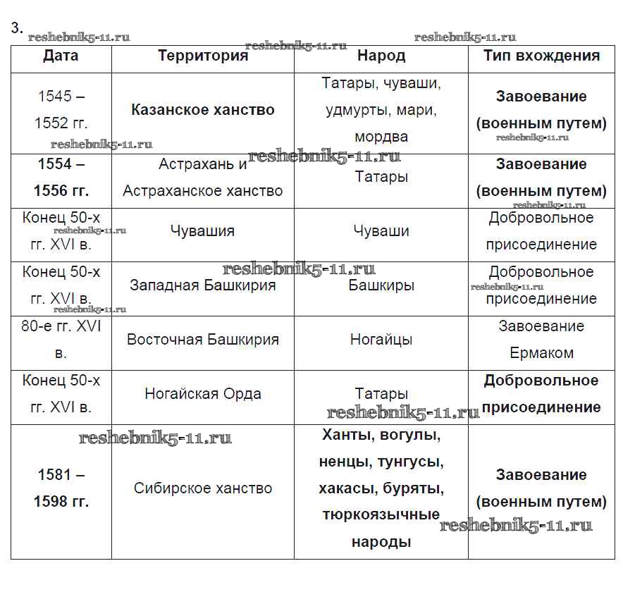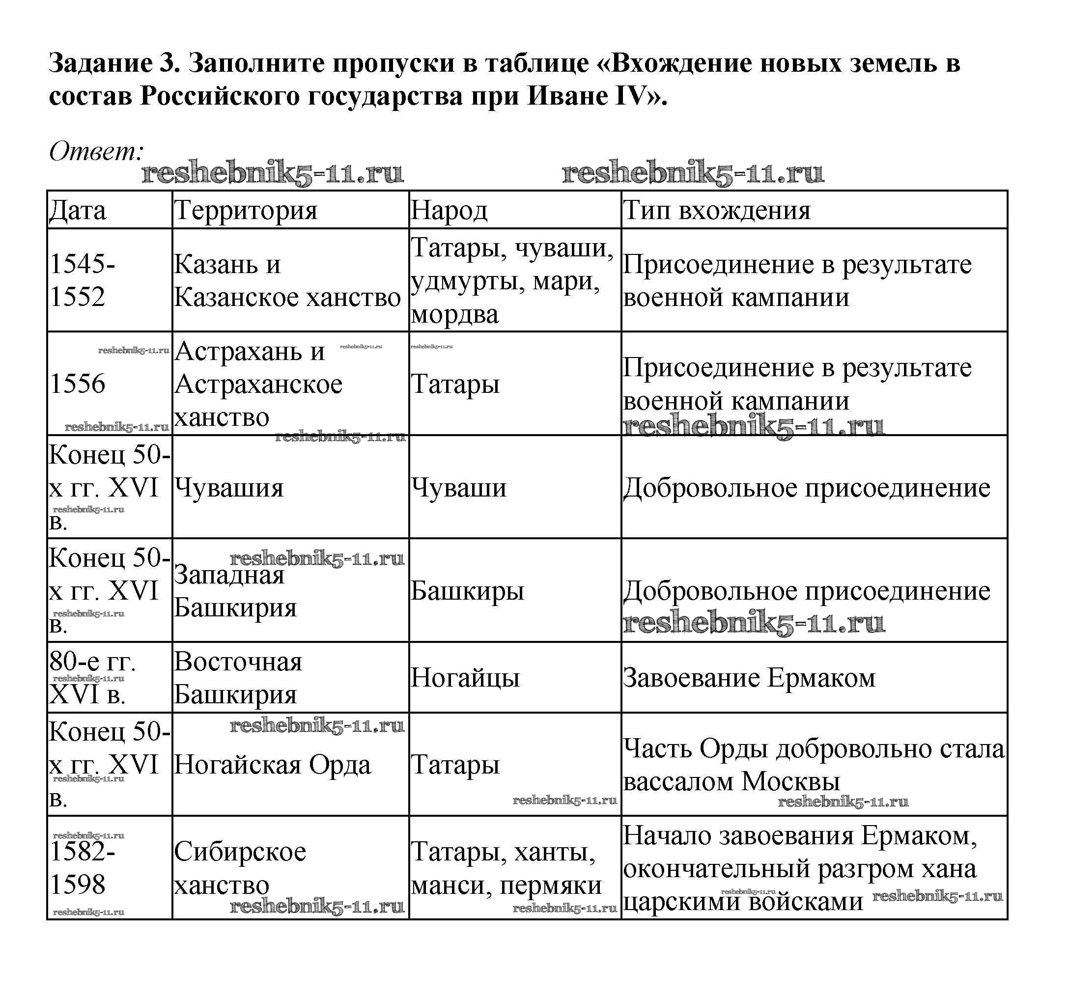 Готовая домашняя работа с ответами по Истории за 7 класс Данилов, Косулина, Лукутин, Соколова Рабочая тетрадь УМК Просвещение 2016 ФГОС - § 7—8. Внешняя политика России во второй половине XVI в. 3