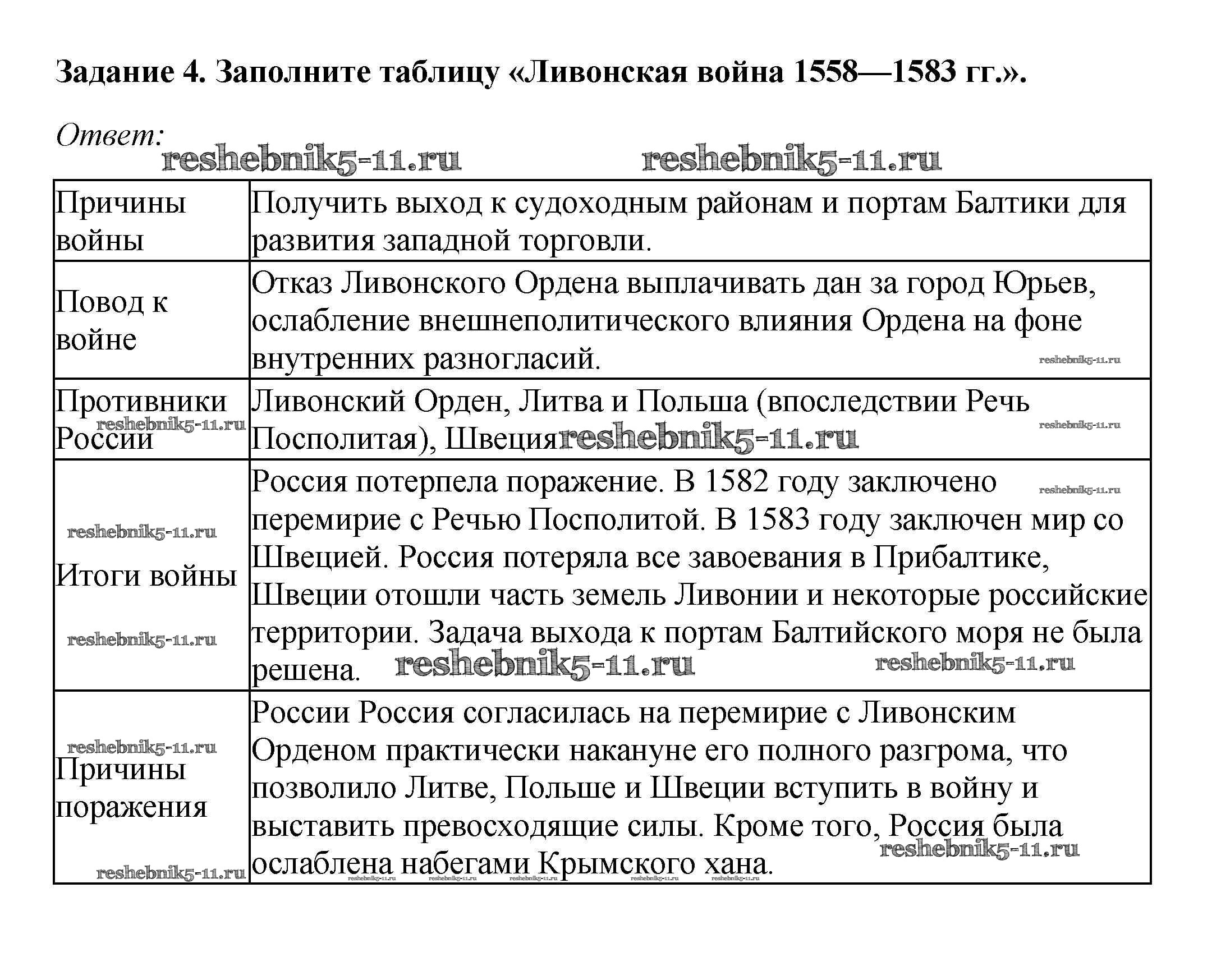 Готовая домашняя работа с ответами по Истории за 7 класс Данилов, Косулина, Лукутин, Соколова Рабочая тетрадь УМК Просвещение 2016 ФГОС - § 7—8. Внешняя политика России во второй половине XVI в. 4