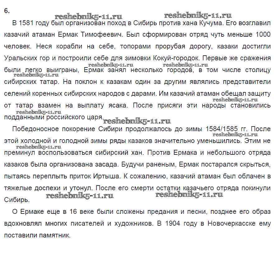 Готовая домашняя работа с ответами по Истории за 7 класс Данилов, Косулина, Лукутин, Соколова Рабочая тетрадь УМК Просвещение 2016 ФГОС - § 7—8. Внешняя политика России во второй половине XVI в. 6