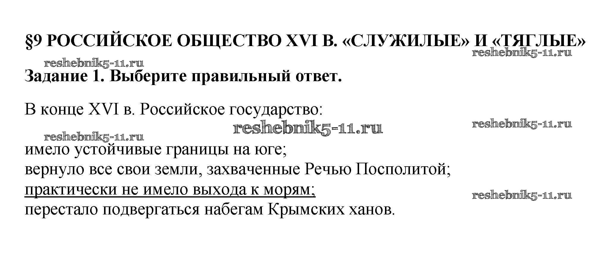 Готовая домашняя работа с ответами по Истории за 7 класс Данилов, Косулина, Лукутин, Соколова Рабочая тетрадь УМК Просвещение 2016 ФГОС - § 9. Российское общество XVI в.: СЛУЖИЛЫЕ И ТЯГЛЫЕ 1