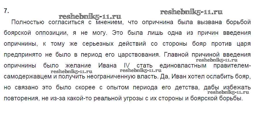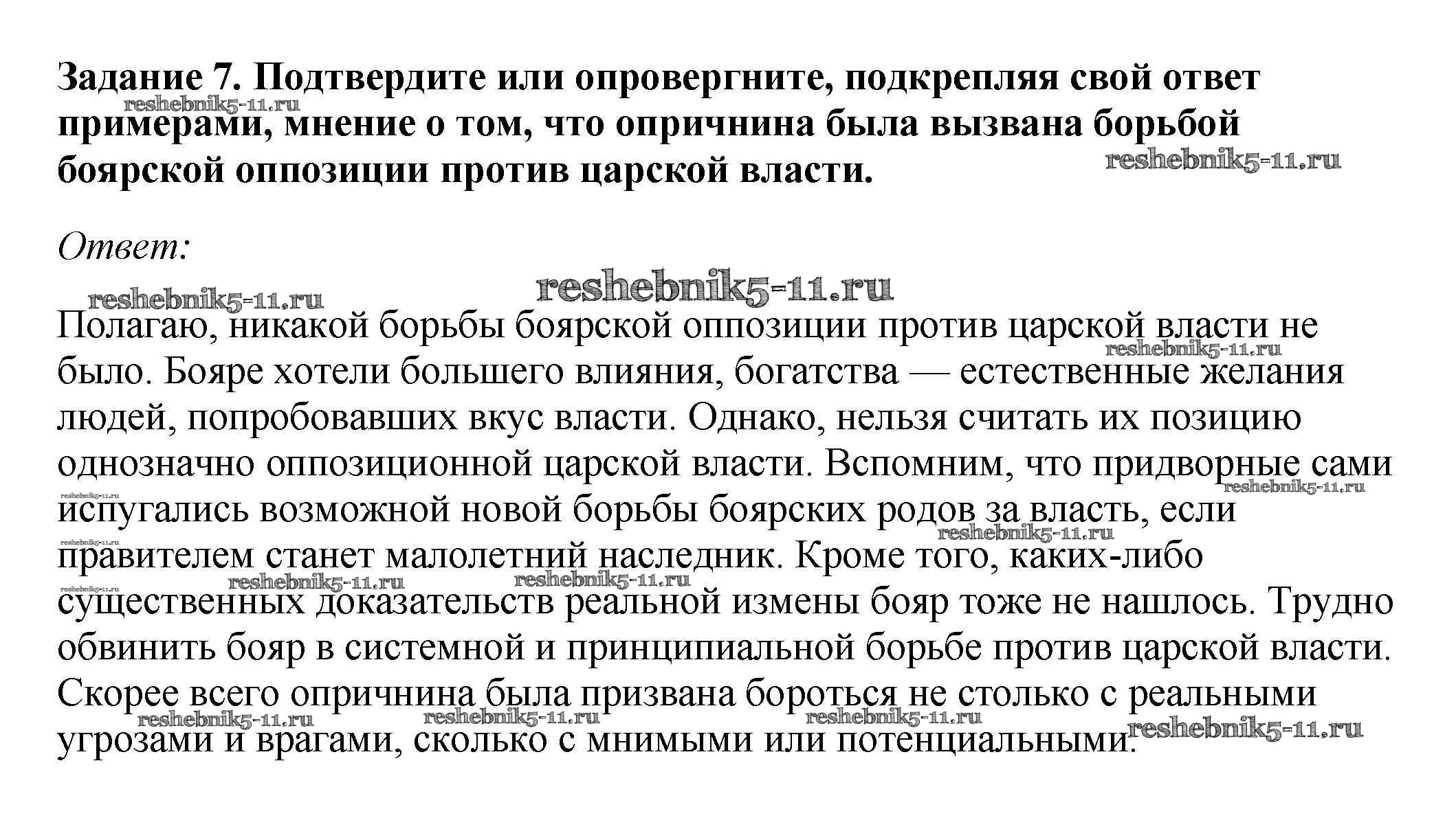 Готовая домашняя работа с ответами по Истории за 7 класс Данилов, Косулина, Лукутин, Соколова Рабочая тетрадь УМК Просвещение 2016 ФГОС - § 10. Опричнина 7