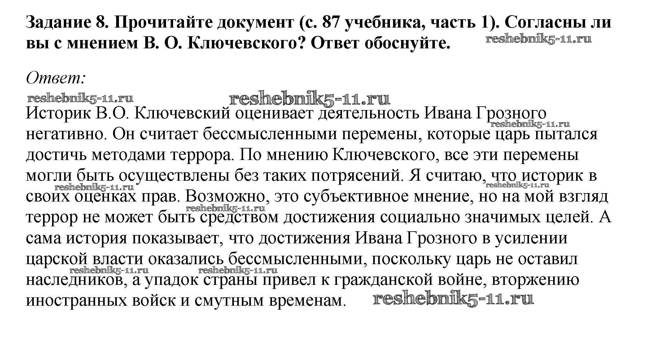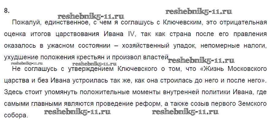 Готовая домашняя работа с ответами по Истории за 7 класс Данилов, Косулина, Лукутин, Соколова Рабочая тетрадь УМК Просвещение 2016 ФГОС - § 10. Опричнина 8