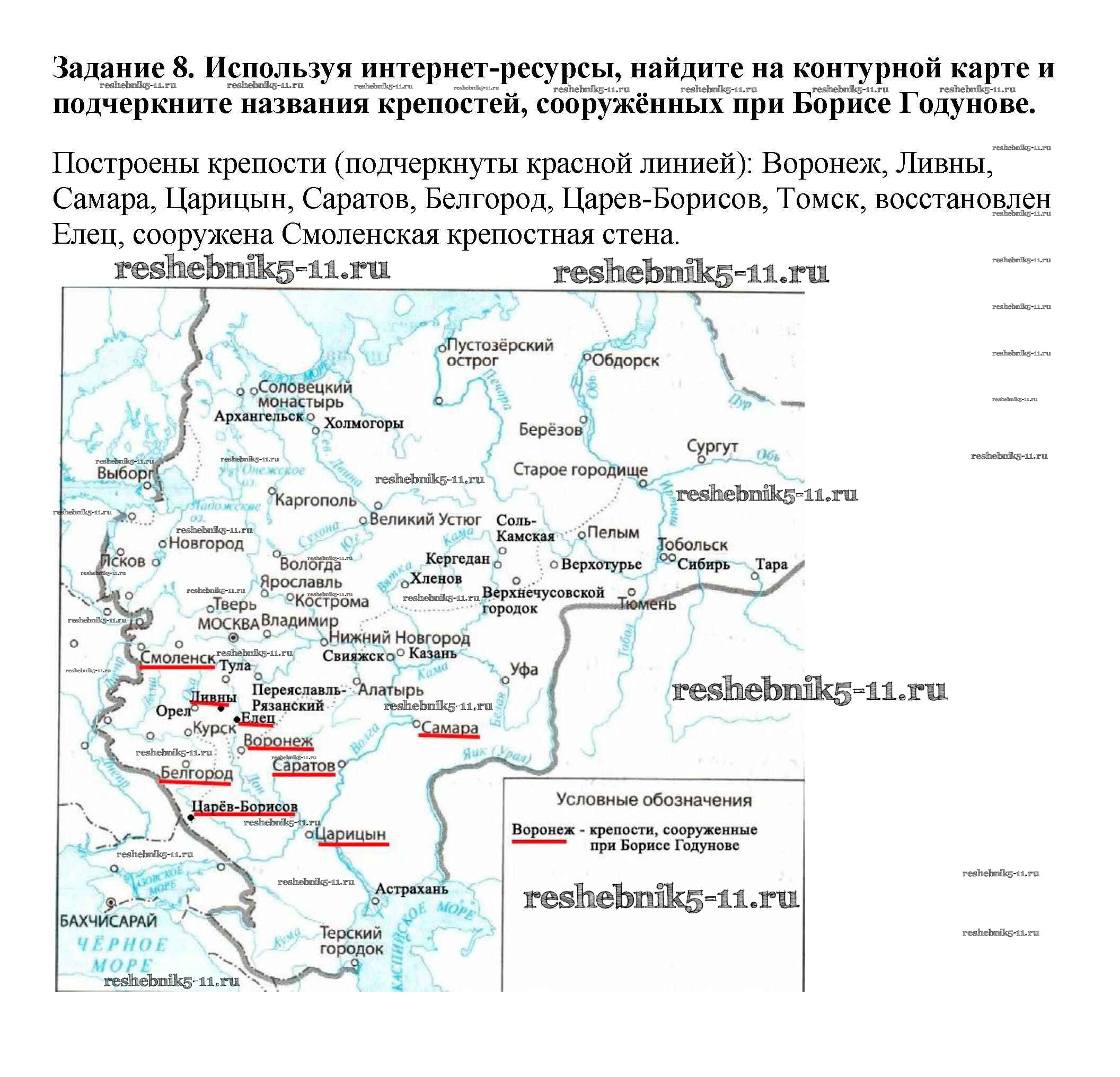Готовая домашняя работа с ответами по Истории за 7 класс Данилов, Косулина, Лукутин, Соколова Рабочая тетрадь УМК Просвещение 2016 ФГОС - §11. Россия в конце XVI в. 8