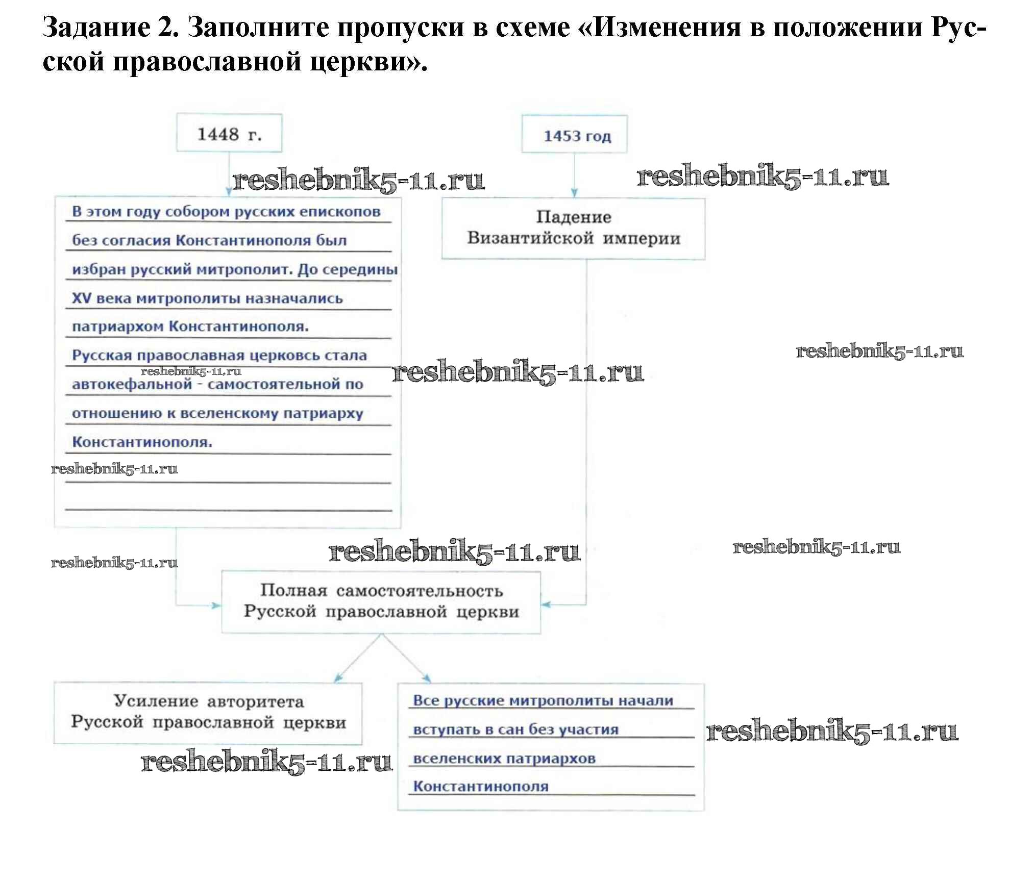 Готовая домашняя работа с ответами по Истории за 7 класс Данилов, Косулина, Лукутин, Соколова Рабочая тетрадь УМК Просвещение 2016 ФГОС - § 12. Церковь и государство в XVI в. 2