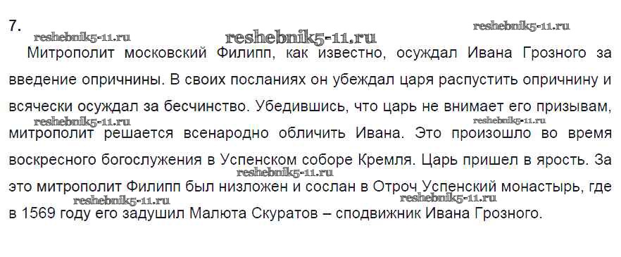 Готовая домашняя работа с ответами по Истории за 7 класс Данилов, Косулина, Лукутин, Соколова Рабочая тетрадь УМК Просвещение 2016 ФГОС - § 12. Церковь и государство в XVI в. 7