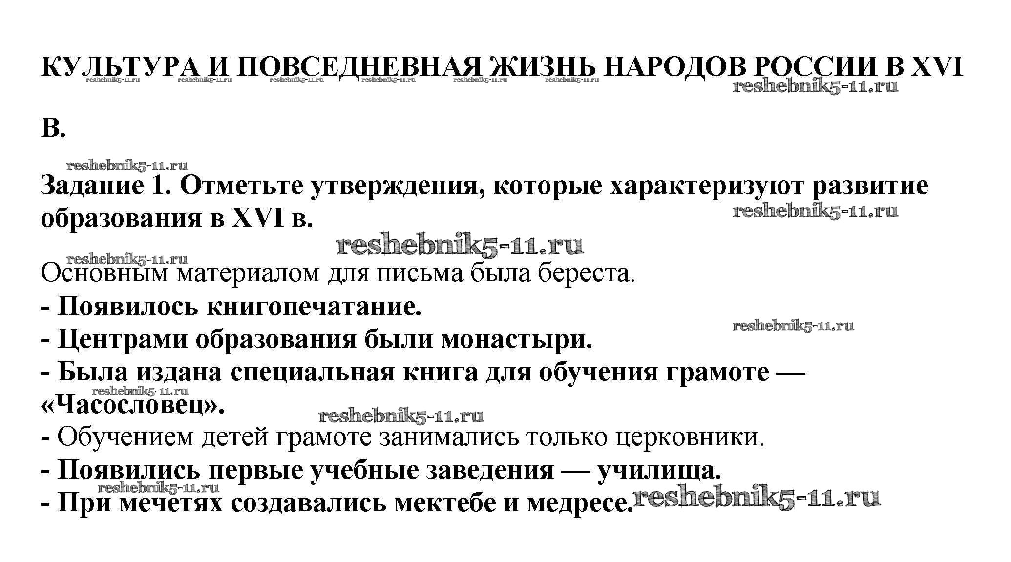 Решебник №1 / культура и повседневная жизнь народов России в XVI в. / 1