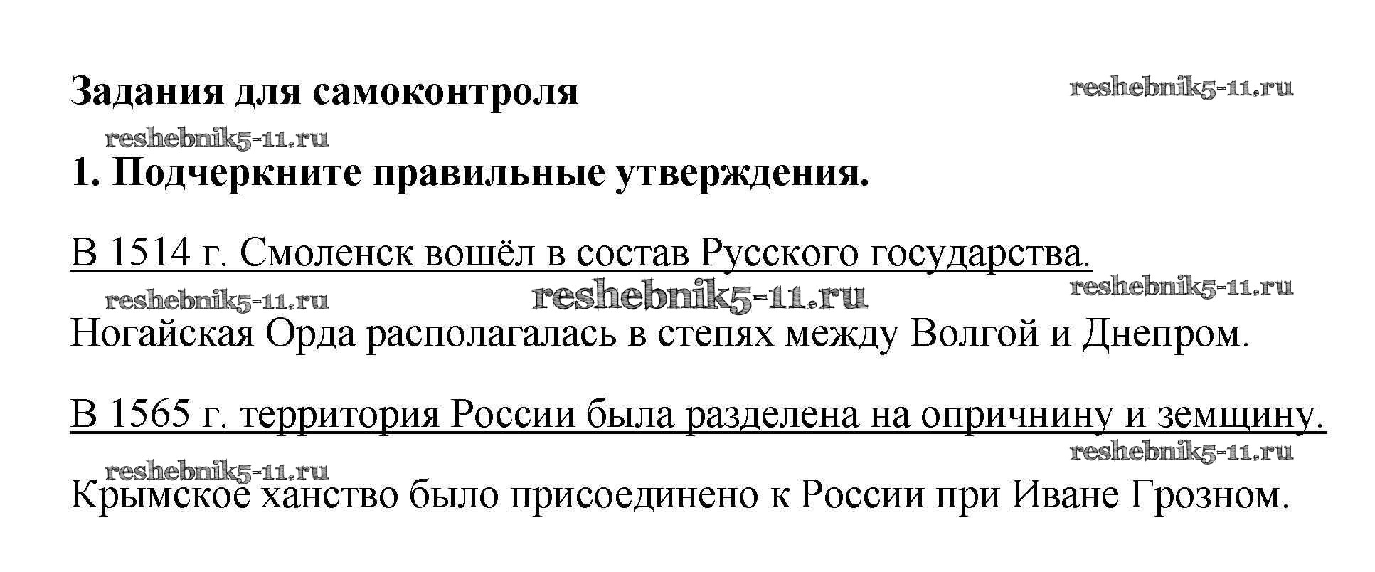 История за 7 класс Данилов Рабочая тетрадь УМК Просвещение задания для самоконтроля 1