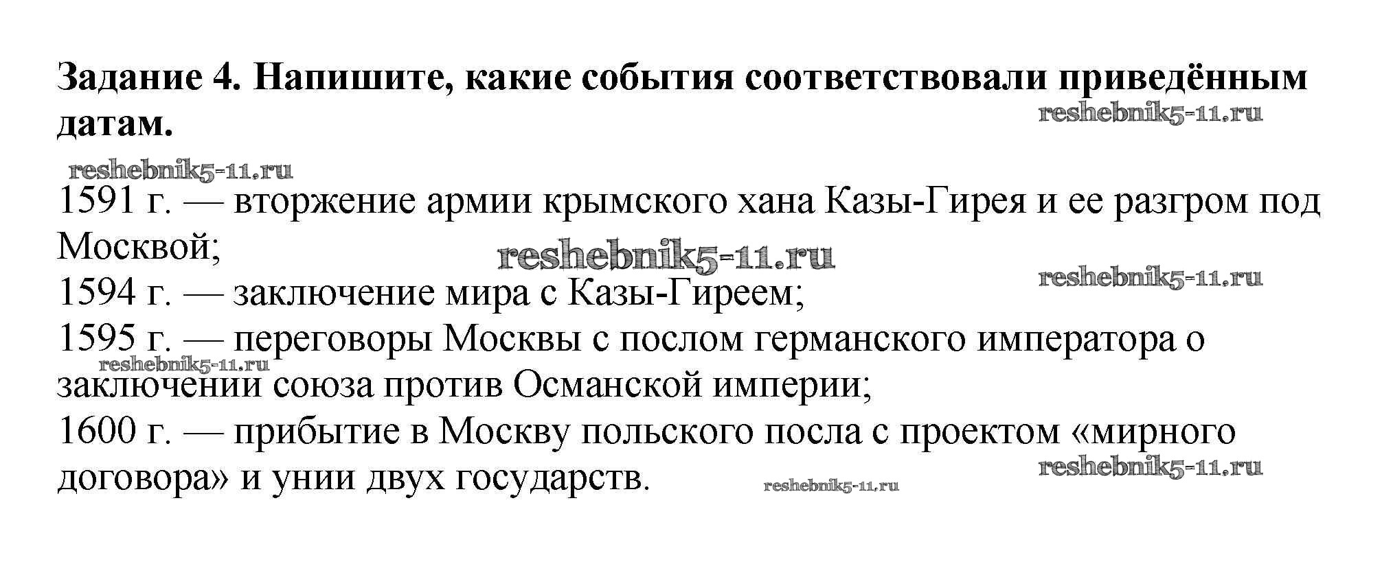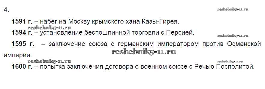 Готовая домашняя работа с ответами по Истории за 7 класс Данилов, Косулина, Лукутин, Соколова Рабочая тетрадь УМК Просвещение 2016 ФГОС - § 13. Внешнеполитические связи России с Европой и Азией в конце XVI — начале XVII в. 4