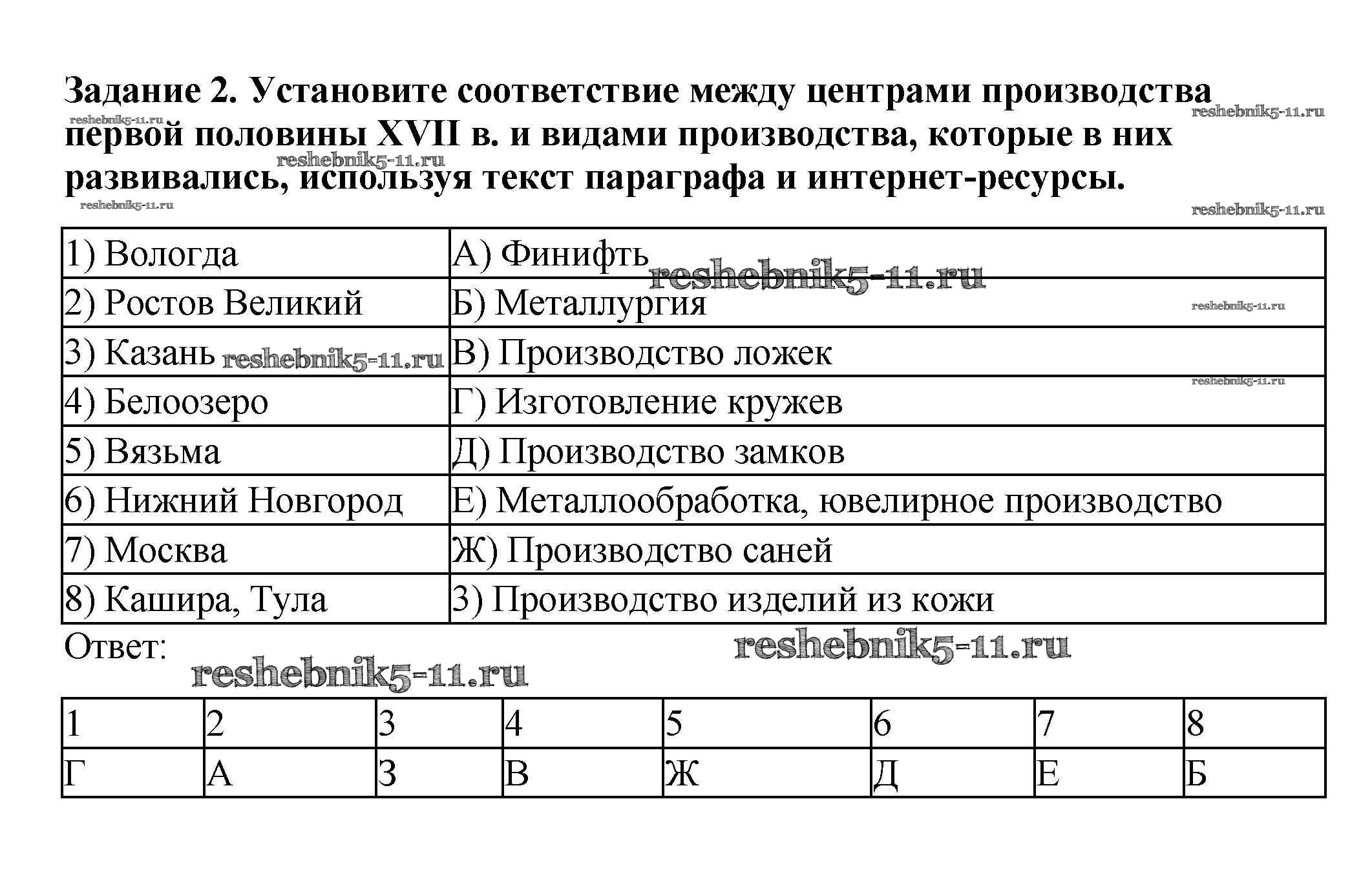 Готовая домашняя работа с ответами по Истории за 7 класс Данилов, Косулина, Лукутин, Соколова Рабочая тетрадь УМК Просвещение 2016 ФГОС - § 17. Экономическое развитие России в XVII в. 2