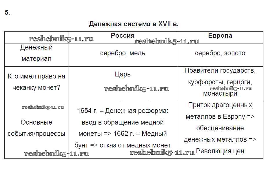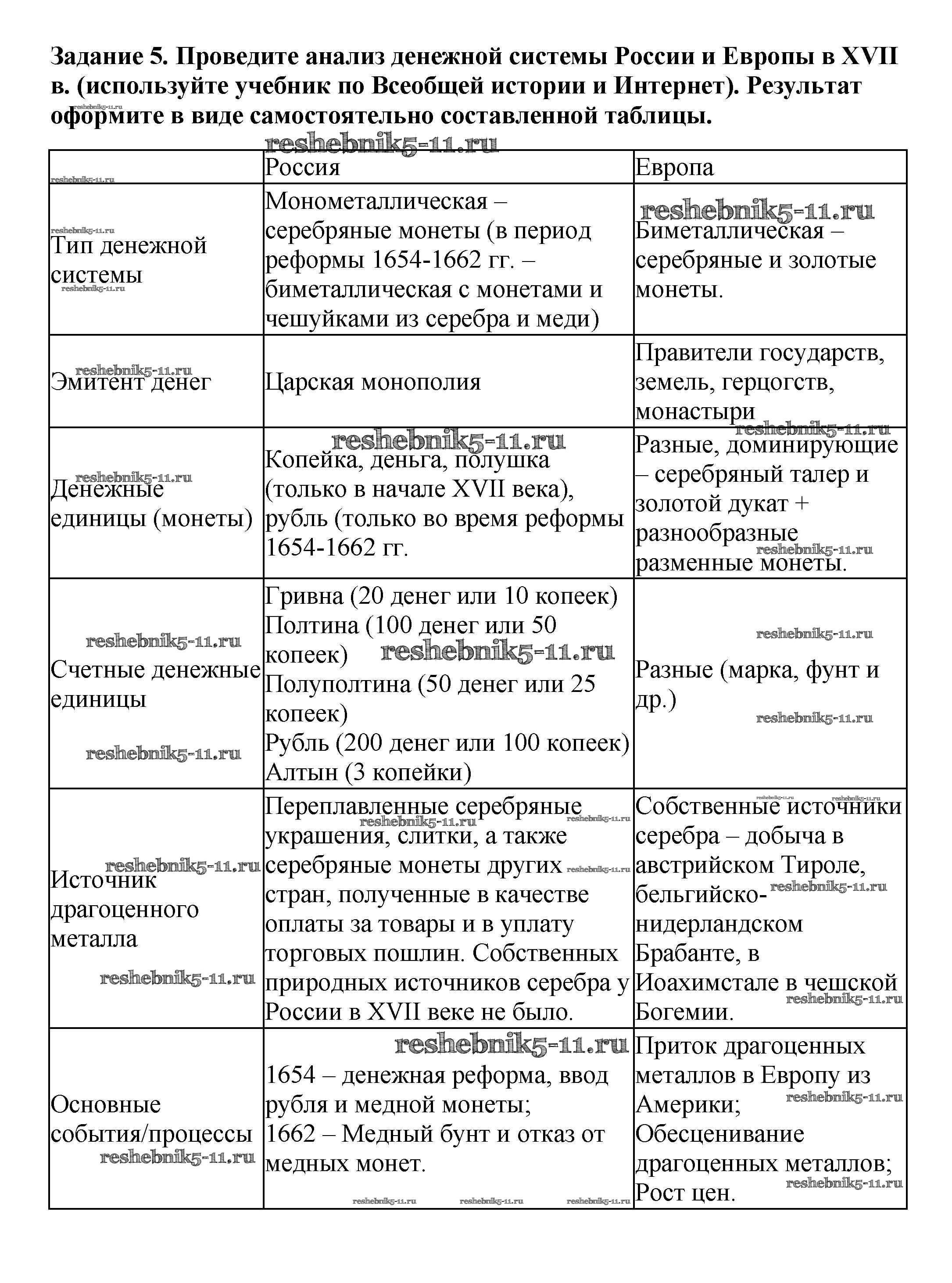 Готовая домашняя работа с ответами по Истории за 7 класс Данилов, Косулина, Лукутин, Соколова Рабочая тетрадь УМК Просвещение 2016 ФГОС - § 17. Экономическое развитие России в XVII в. 5