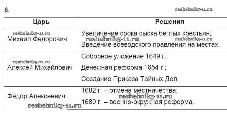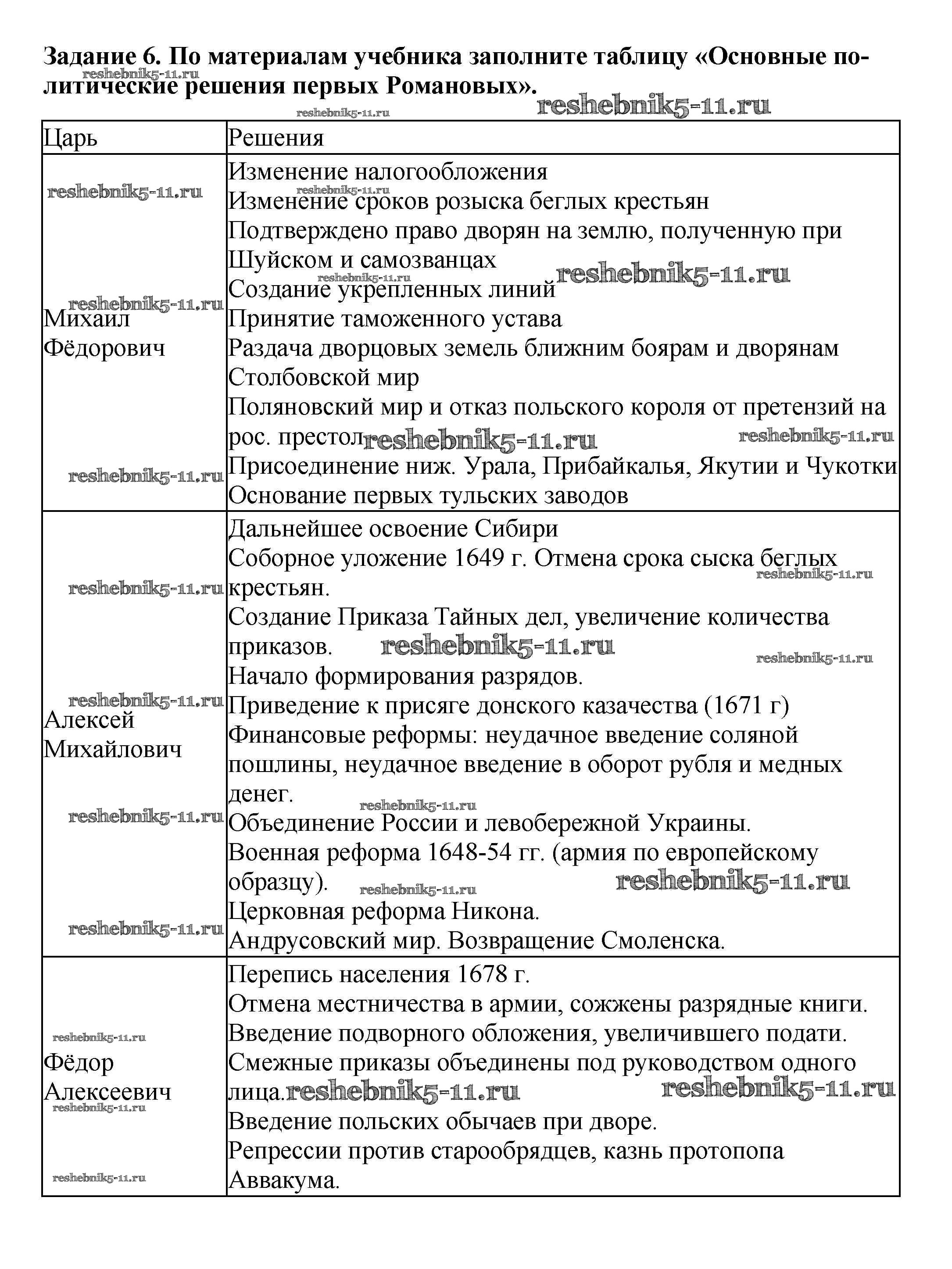 Готовая домашняя работа с ответами по Истории за 7 класс Данилов, Косулина, Лукутин, Соколова Рабочая тетрадь УМК Просвещение 2016 ФГОС - § 18. Россия при первых Романовых: перемены в государственном устройстве 6