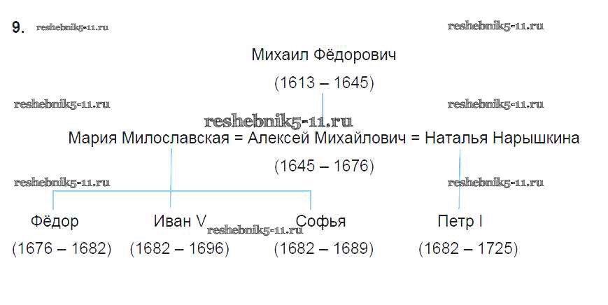 Готовая домашняя работа с ответами по Истории за 7 класс Данилов, Косулина, Лукутин, Соколова Рабочая тетрадь УМК Просвещение 2016 ФГОС - § 18. Россия при первых Романовых: перемены в государственном устройстве 9