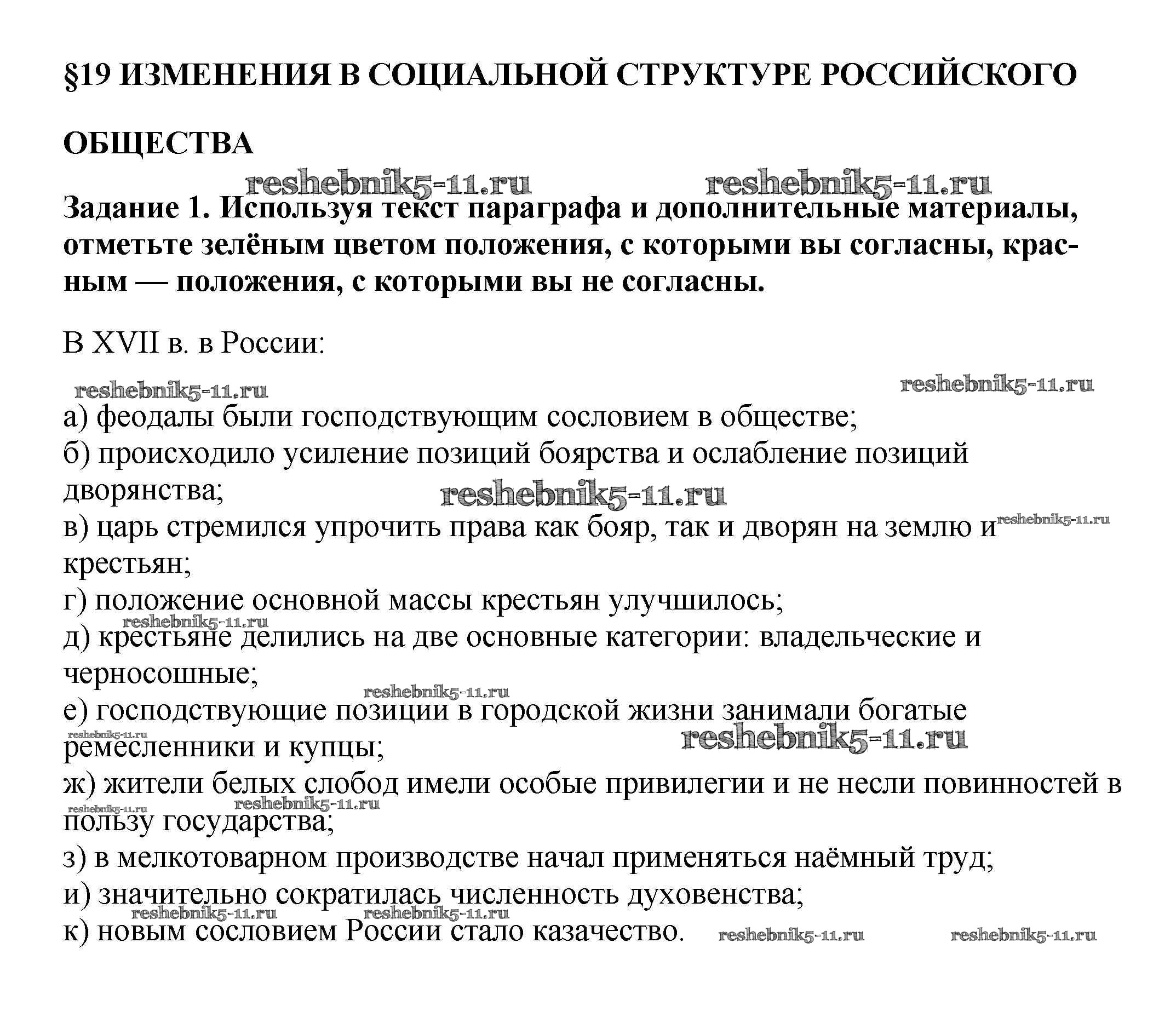 Готовая домашняя работа с ответами по Истории за 7 класс Данилов, Косулина, Лукутин, Соколова Рабочая тетрадь УМК Просвещение 2016 ФГОС - § 19. Изменения в социальной структуре российского общества 1