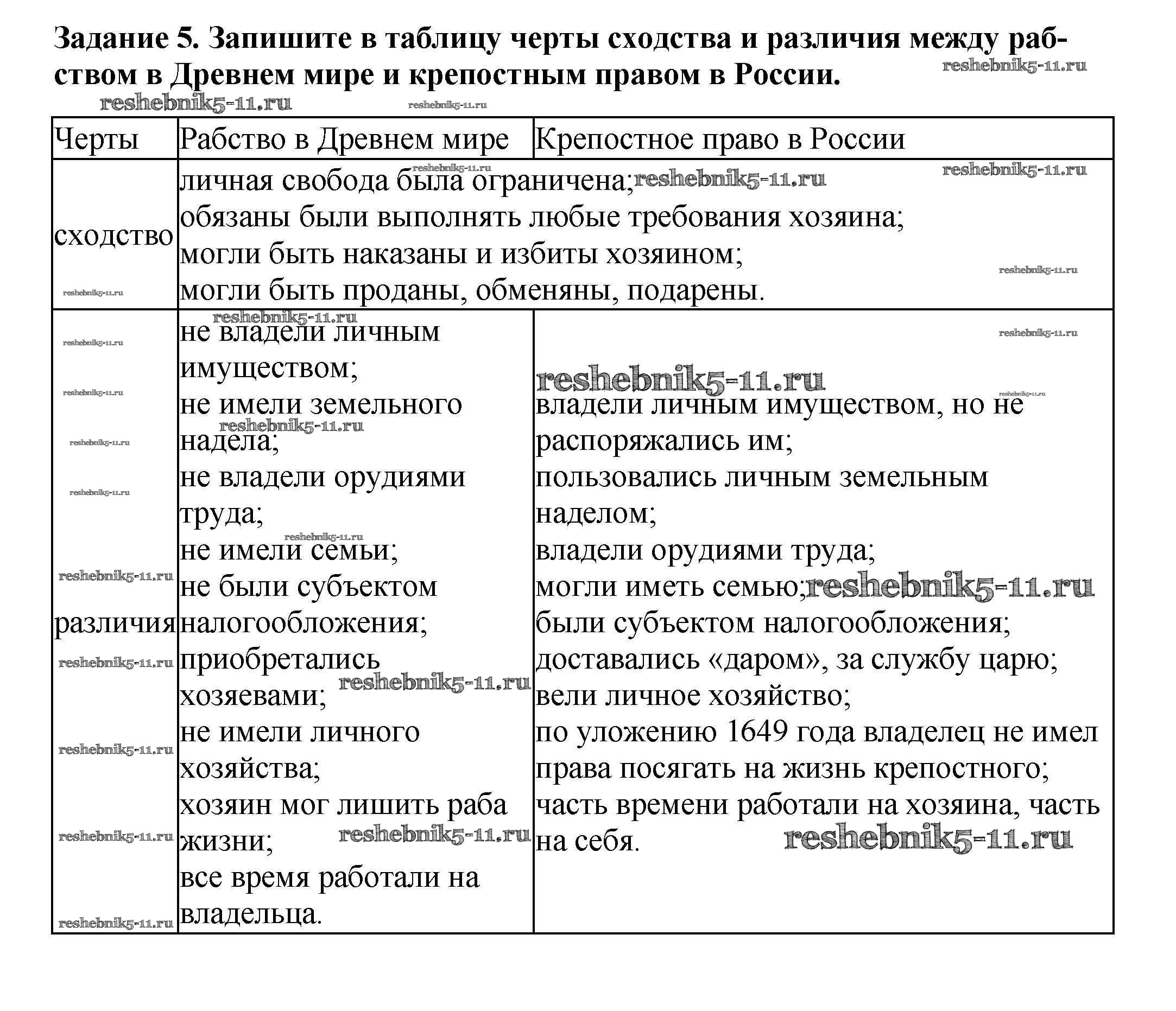 Готовая домашняя работа с ответами по Истории за 7 класс Данилов, Косулина, Лукутин, Соколова Рабочая тетрадь УМК Просвещение 2016 ФГОС - § 19. Изменения в социальной структуре российского общества 5