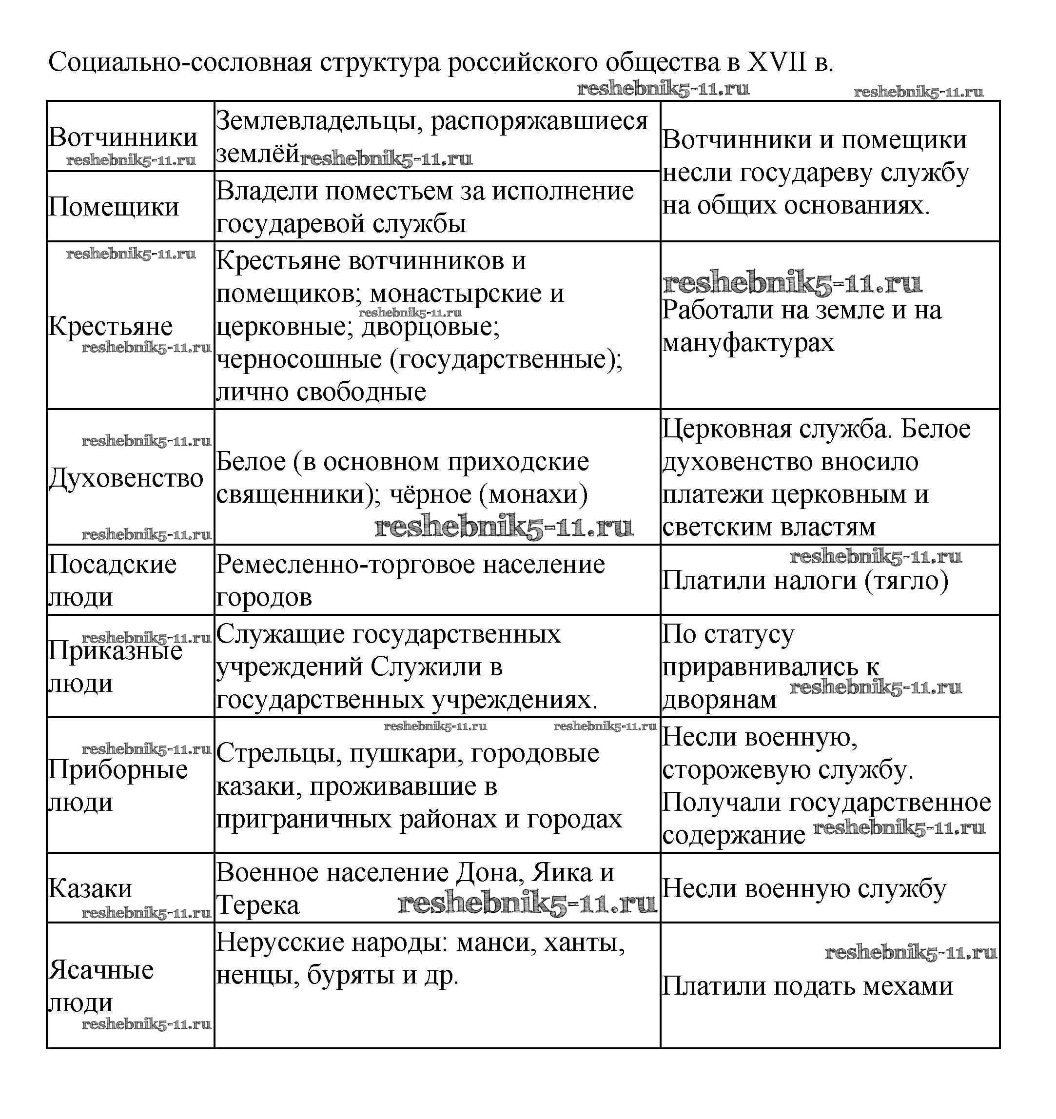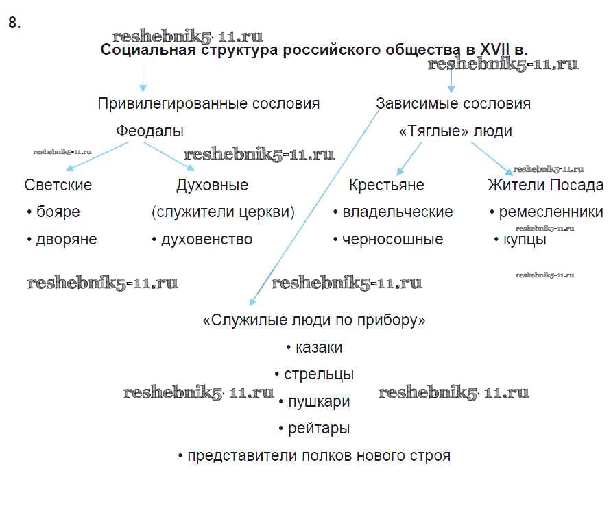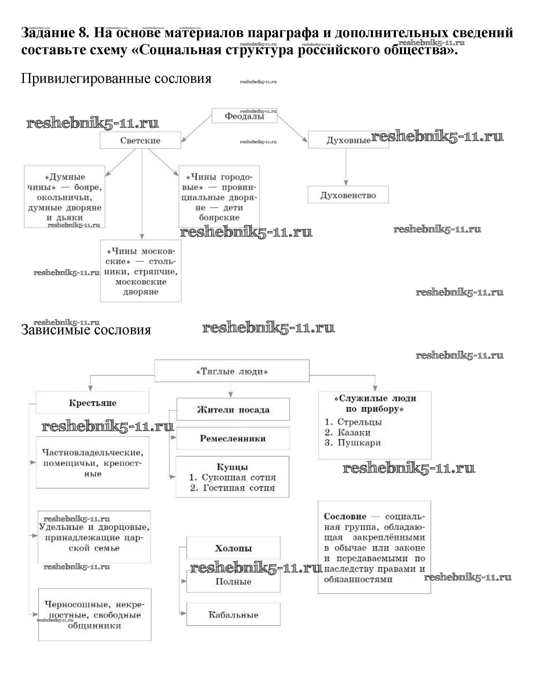 Готовая домашняя работа с ответами по Истории за 7 класс Данилов, Косулина, Лукутин, Соколова Рабочая тетрадь УМК Просвещение 2016 ФГОС - § 19. Изменения в социальной структуре российского общества 8