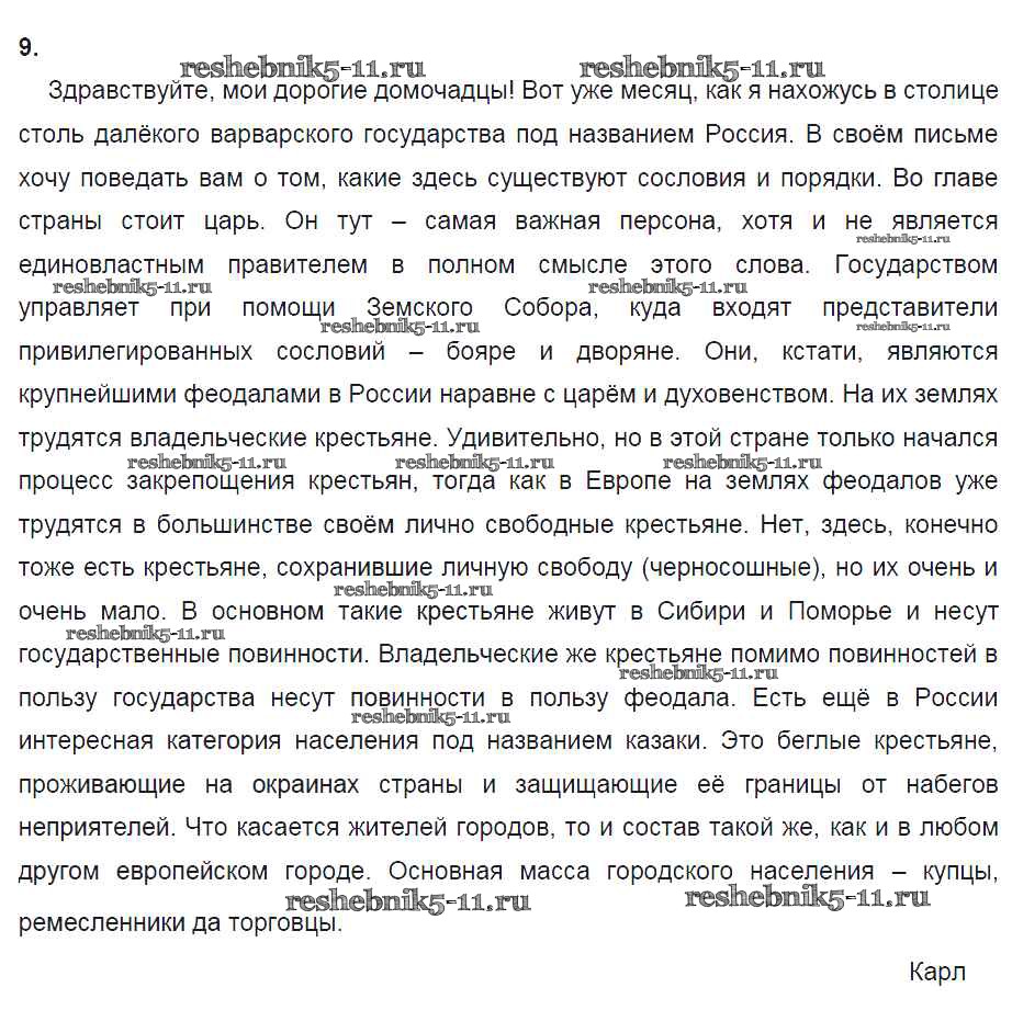 Готовая домашняя работа с ответами по Истории за 7 класс Данилов, Косулина, Лукутин, Соколова Рабочая тетрадь УМК Просвещение 2016 ФГОС - § 19. Изменения в социальной структуре российского общества 9