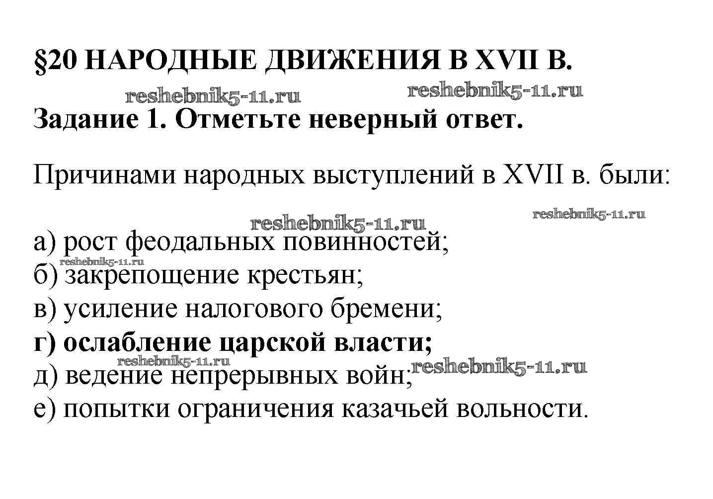 Готовая домашняя работа с ответами по Истории за 7 класс Данилов, Косулина, Лукутин, Соколова Рабочая тетрадь УМК Просвещение 2016 ФГОС - § 20. Народные движения в XVII в. 1