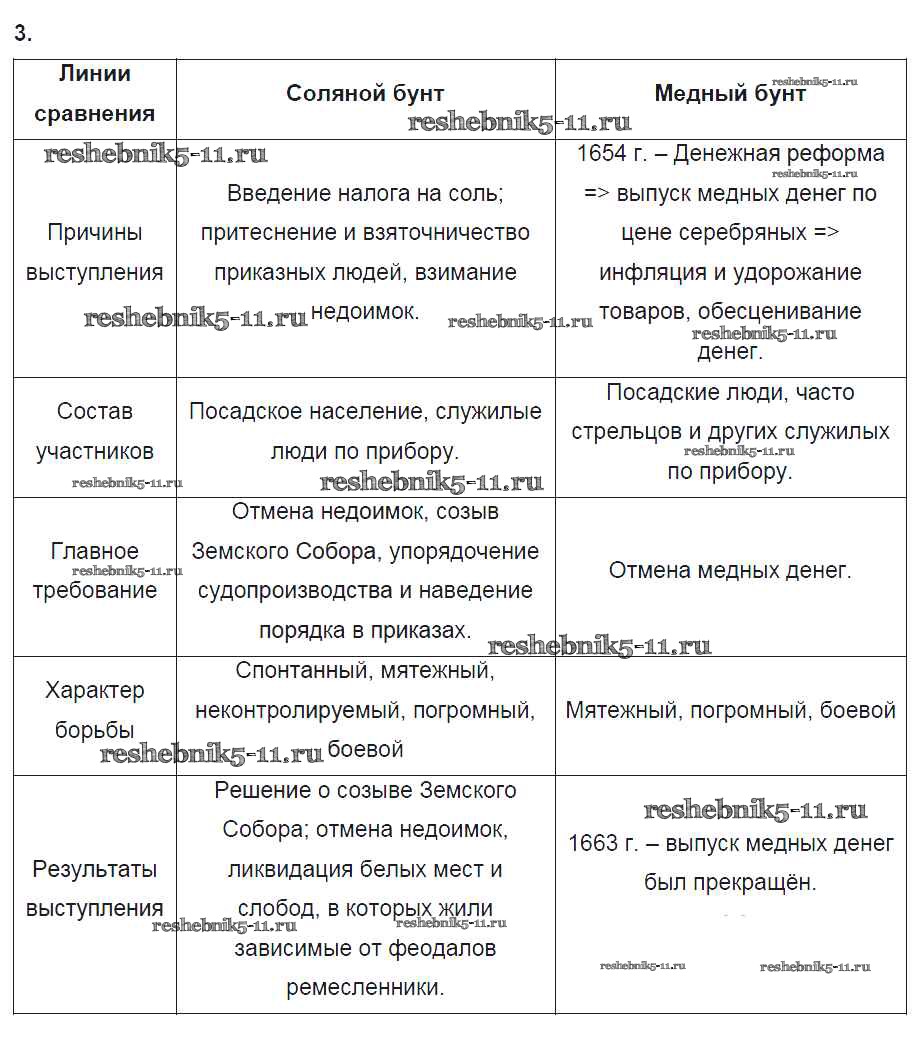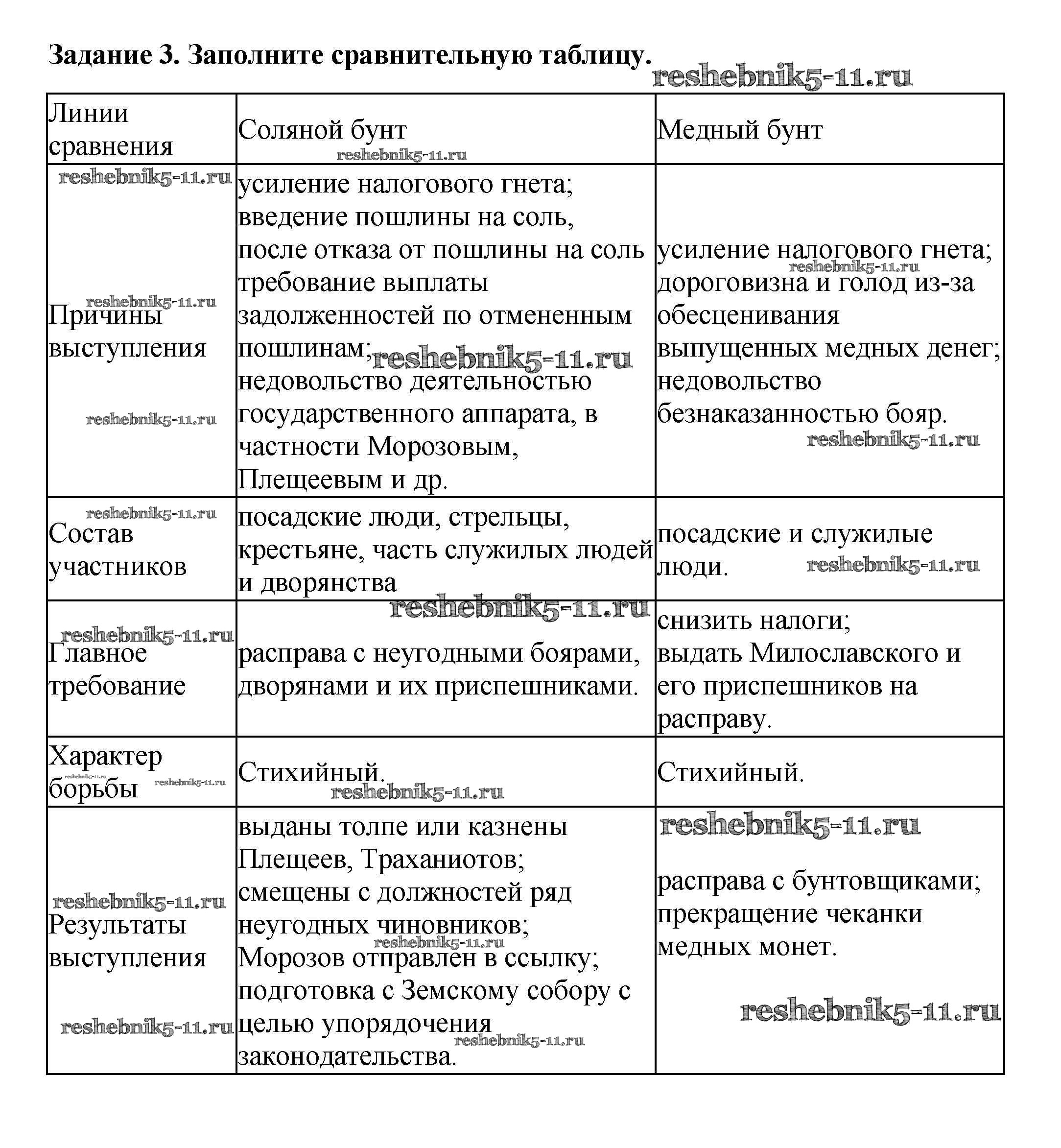 Готовая домашняя работа с ответами по Истории за 7 класс Данилов, Косулина, Лукутин, Соколова Рабочая тетрадь УМК Просвещение 2016 ФГОС - § 20. Народные движения в XVII в. 3