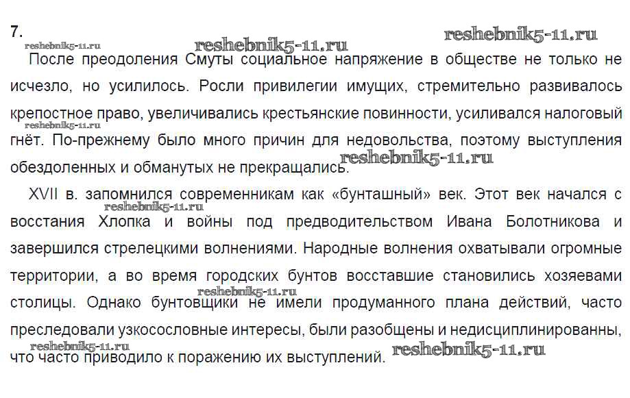 Готовая домашняя работа с ответами по Истории за 7 класс Данилов, Косулина, Лукутин, Соколова Рабочая тетрадь УМК Просвещение 2016 ФГОС - § 20. Народные движения в XVII в. 7