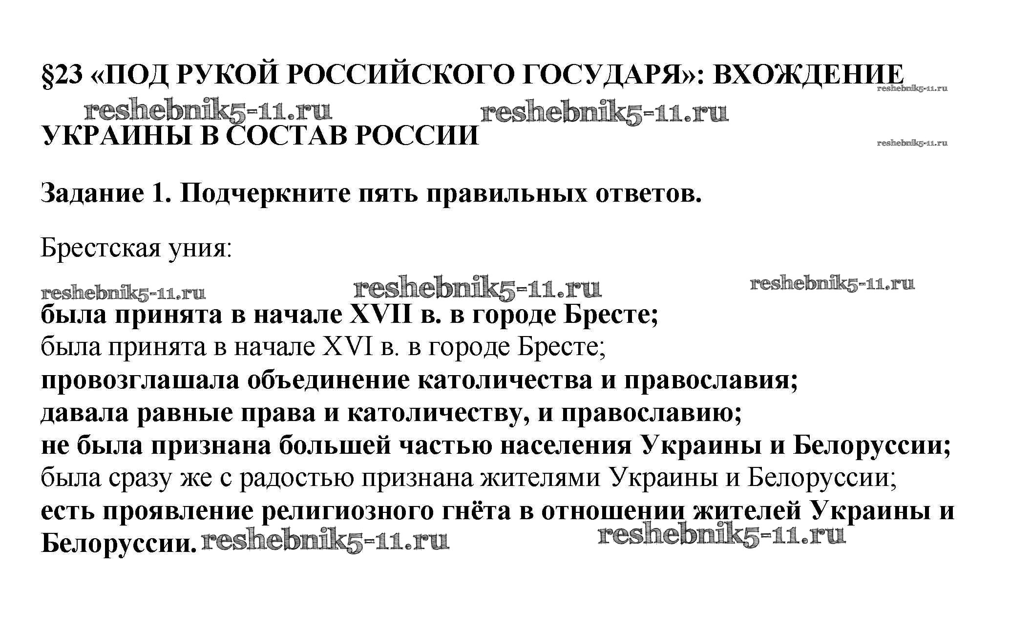 Готовая домашняя работа с ответами по Истории за 7 класс Данилов, Косулина, Лукутин, Соколова Рабочая тетрадь УМК Просвещение 2016 ФГОС - § 23. «Под рукой российского государства»: Вхождение Украины в состав России 1