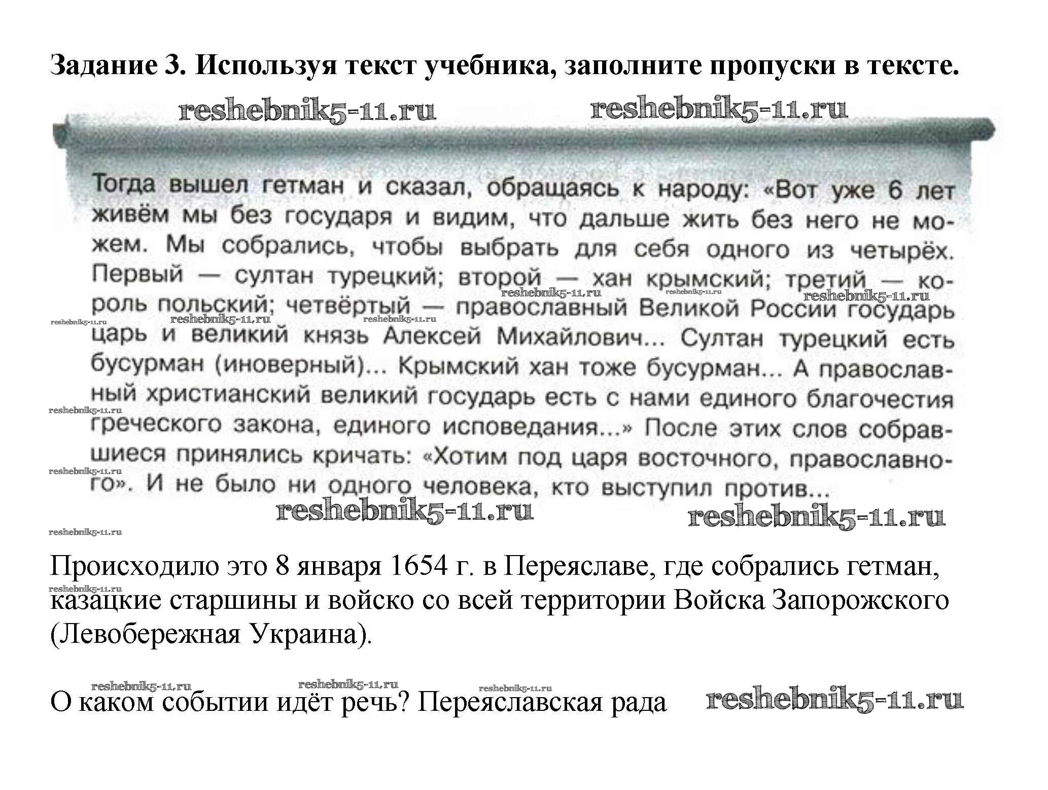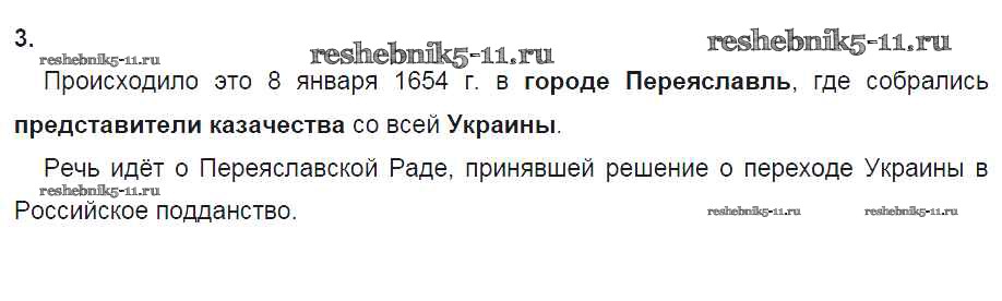 Готовая домашняя работа с ответами по Истории за 7 класс Данилов, Косулина, Лукутин, Соколова Рабочая тетрадь УМК Просвещение 2016 ФГОС - § 23. «Под рукой российского государства»: Вхождение Украины в состав России 3