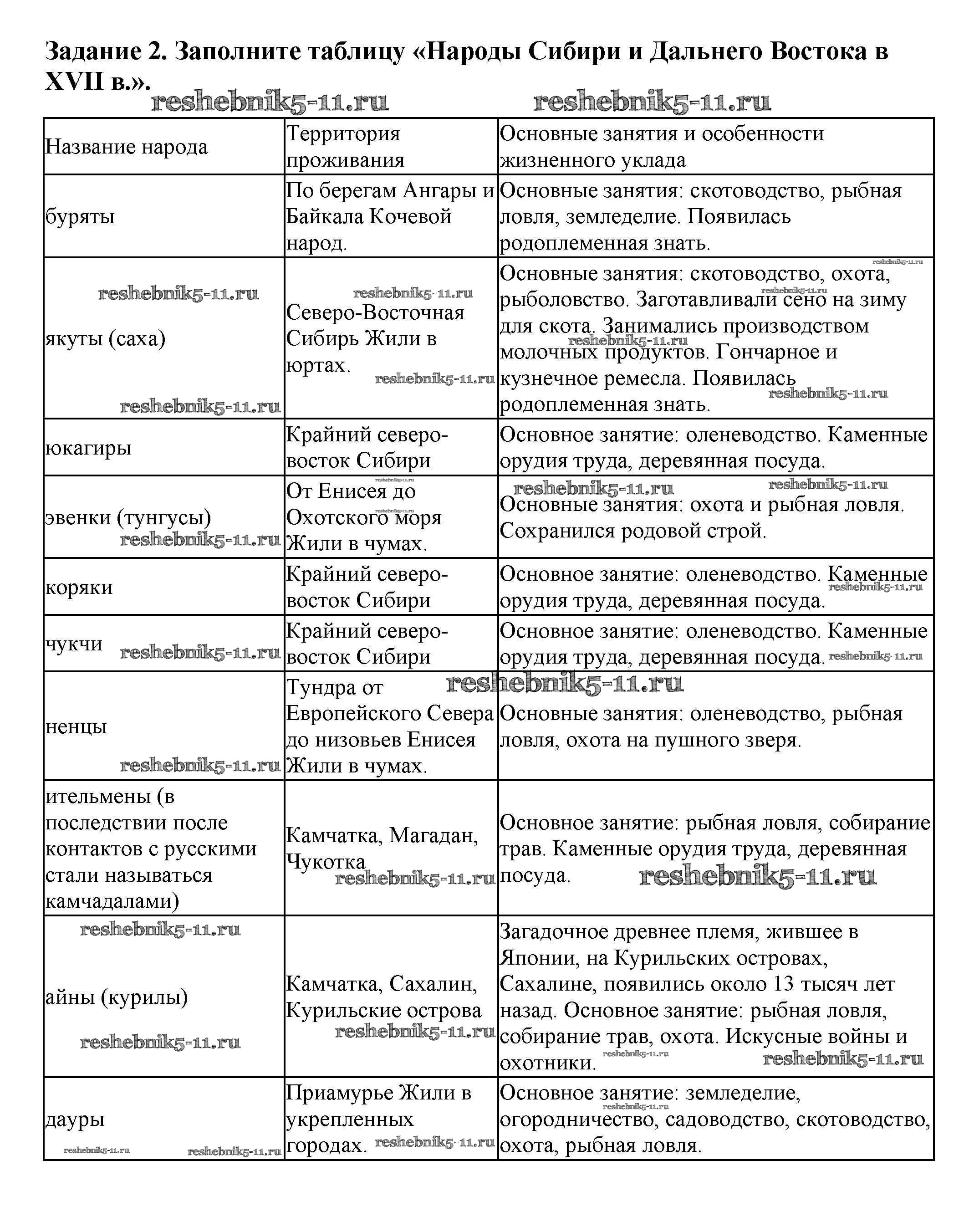 Готовая домашняя работа с ответами по Истории за 7 класс Данилов, Косулина, Лукутин, Соколова Рабочая тетрадь УМК Просвещение 2016 ФГОС - Народы России в XVII в. 2