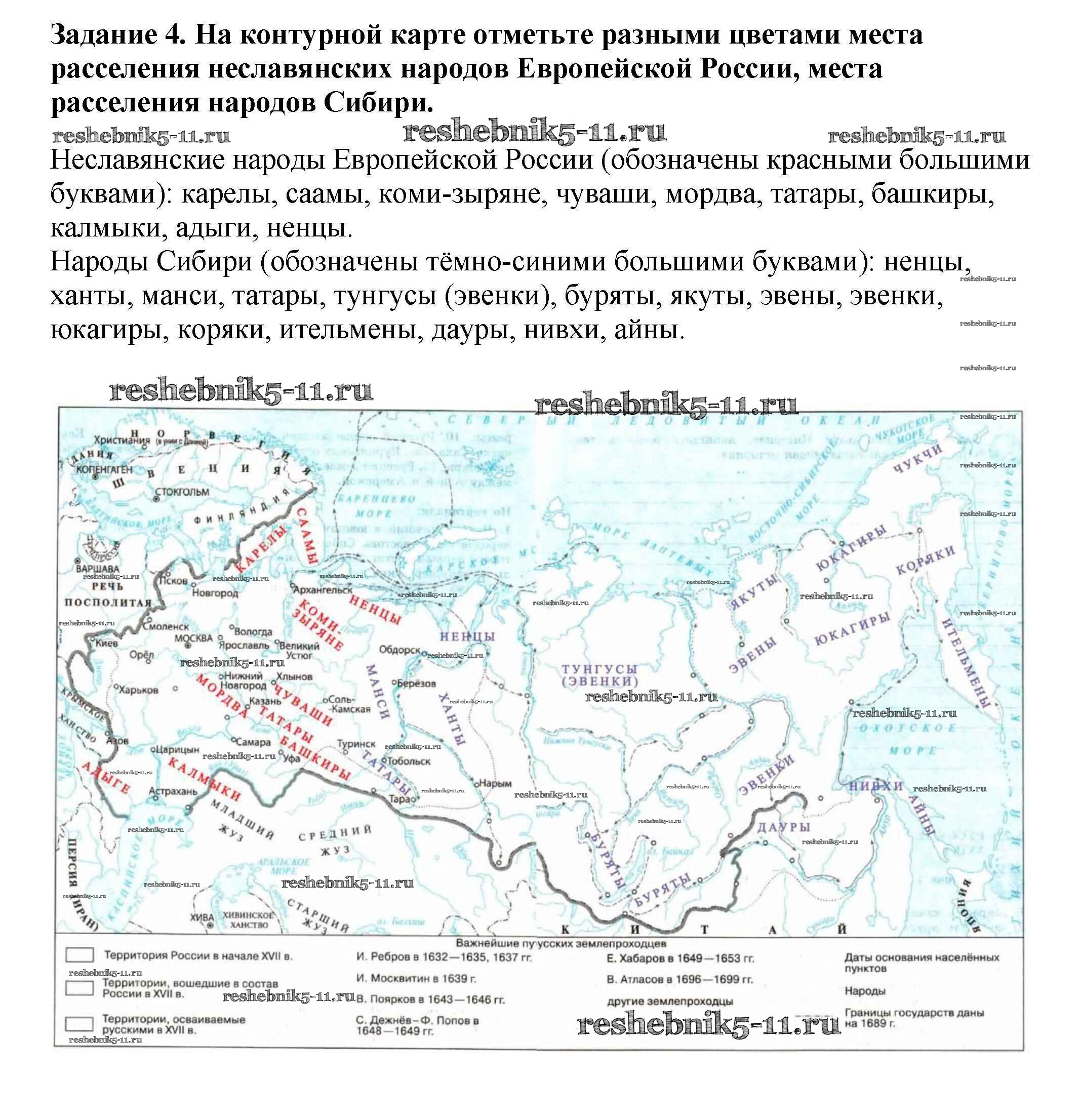 Готовая домашняя работа с ответами по Истории за 7 класс Данилов, Косулина, Лукутин, Соколова Рабочая тетрадь УМК Просвещение 2016 ФГОС - Народы России в XVII в. 4