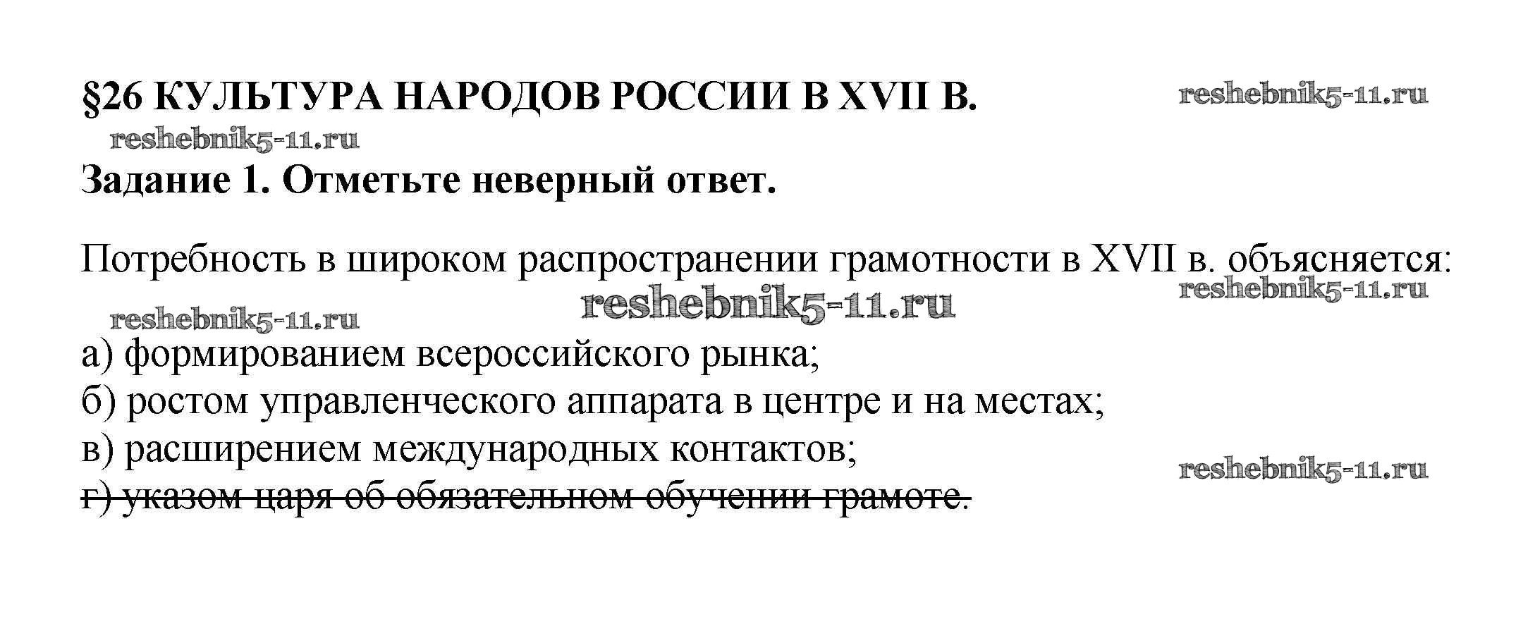 Готовая домашняя работа с ответами по Истории за 7 класс Данилов, Косулина, Лукутин, Соколова Рабочая тетрадь УМК Просвещение 2016 ФГОС - § 26. Культура народов России в XVII в. 1