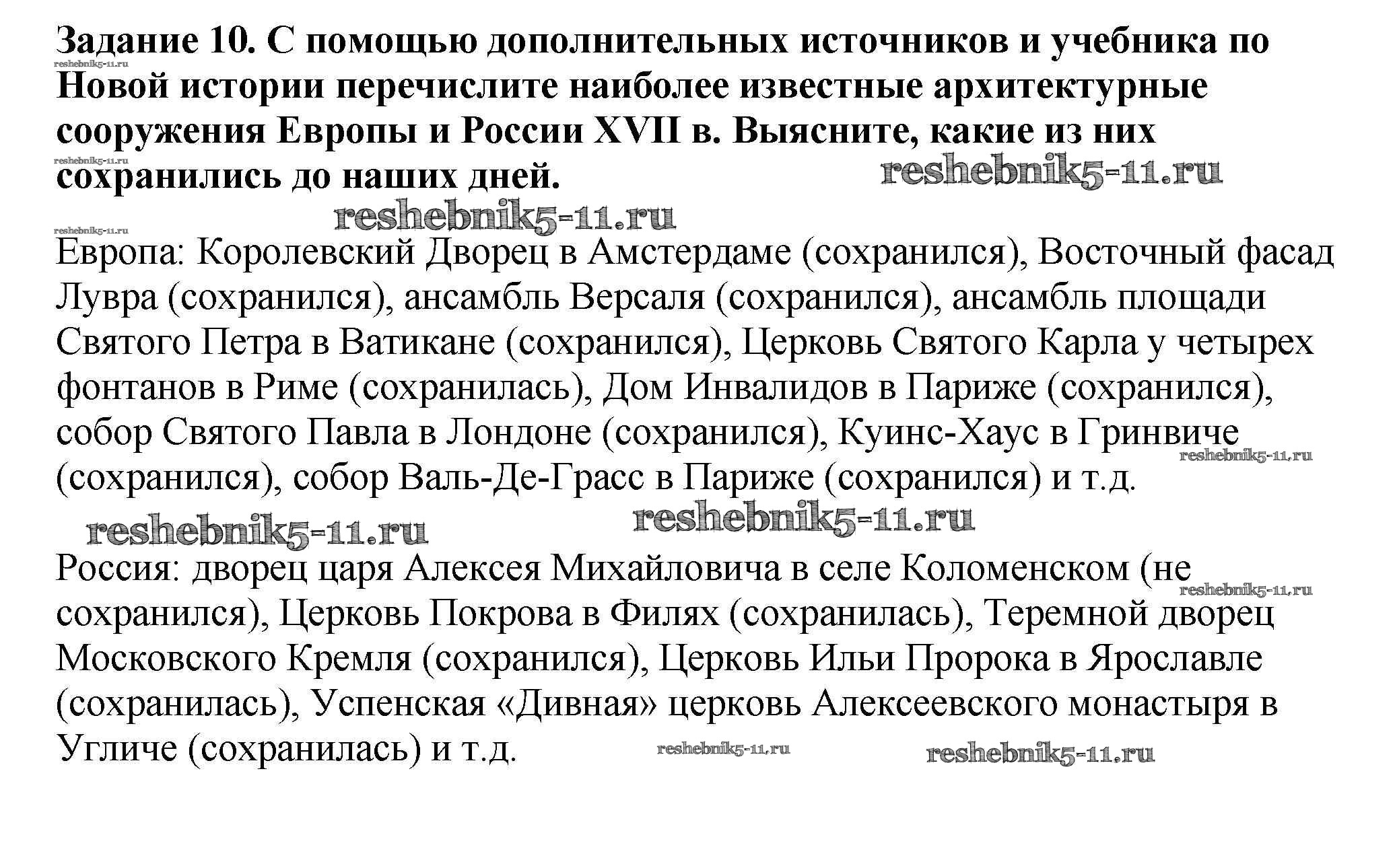 Готовая домашняя работа с ответами по Истории за 7 класс Данилов, Косулина, Лукутин, Соколова Рабочая тетрадь УМК Просвещение 2016 ФГОС - § 26. Культура народов России в XVII в. 10