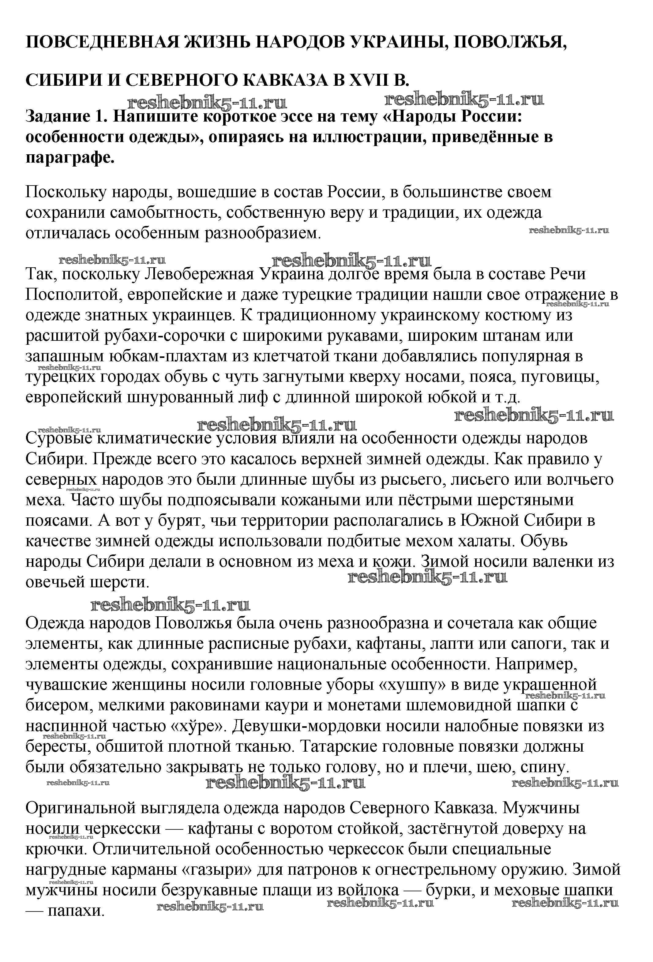 Готовая домашняя работа с ответами по Истории за 7 класс Данилов, Косулина, Лукутин, Соколова Рабочая тетрадь УМК Просвещение 2016 ФГОС - Повседневная жизнь народов Украины, Поволжья, Сибири и Северного Кавказа в XVII в. 1