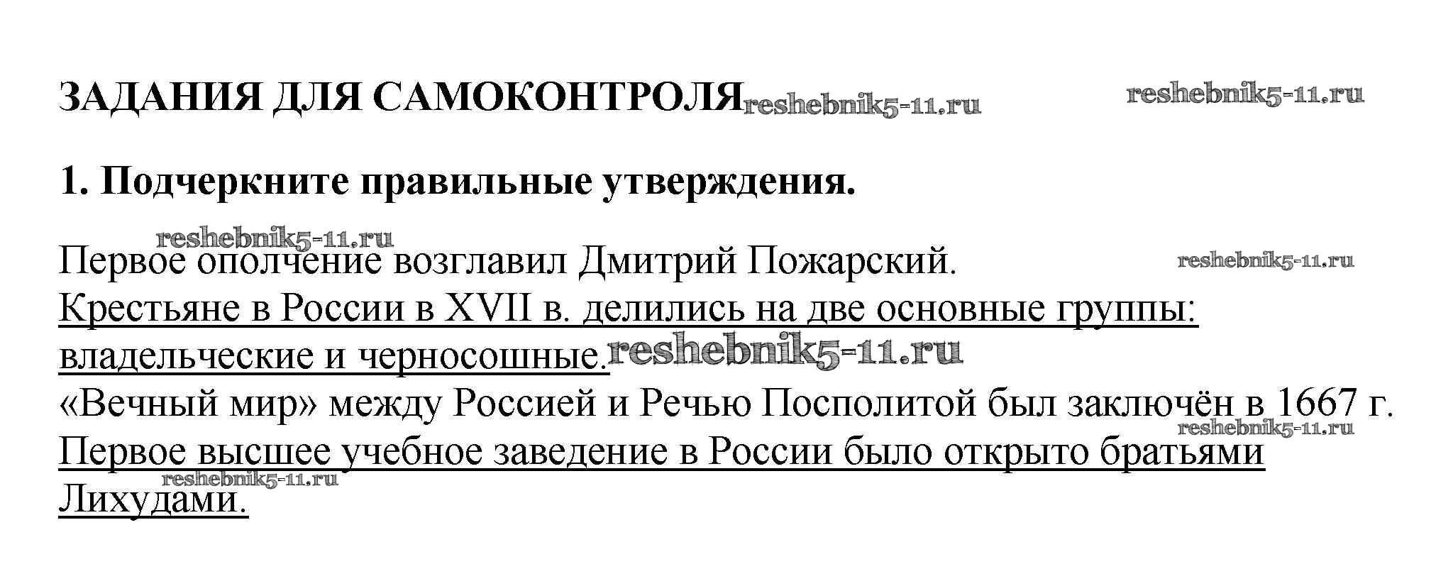 История за 7 класс Данилов Рабочая тетрадь УМК Просвещение задания для самоконтроля 1